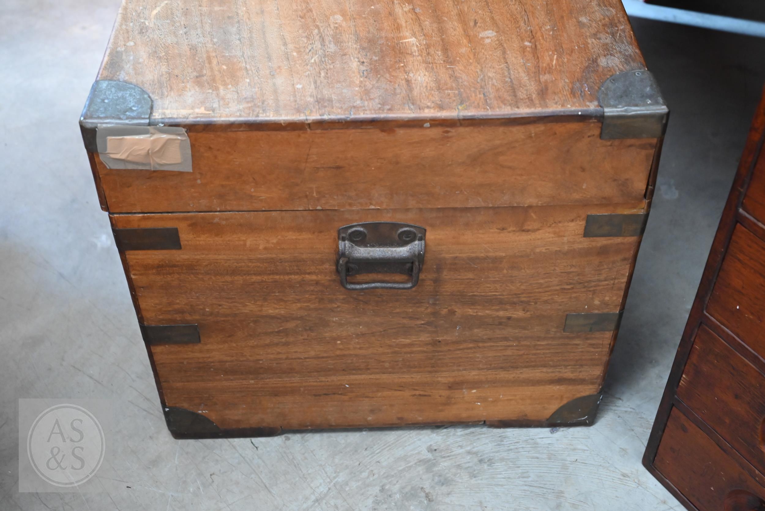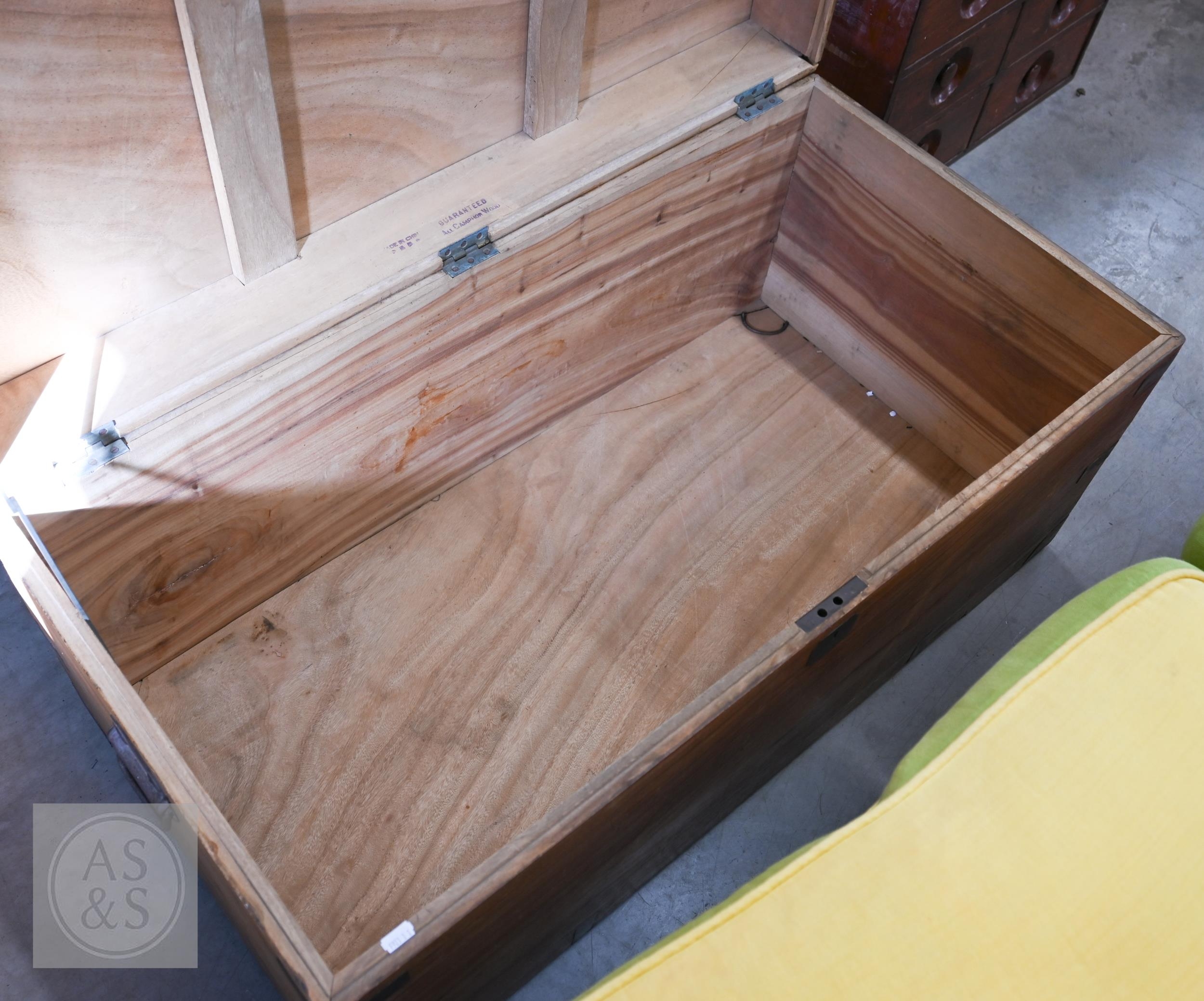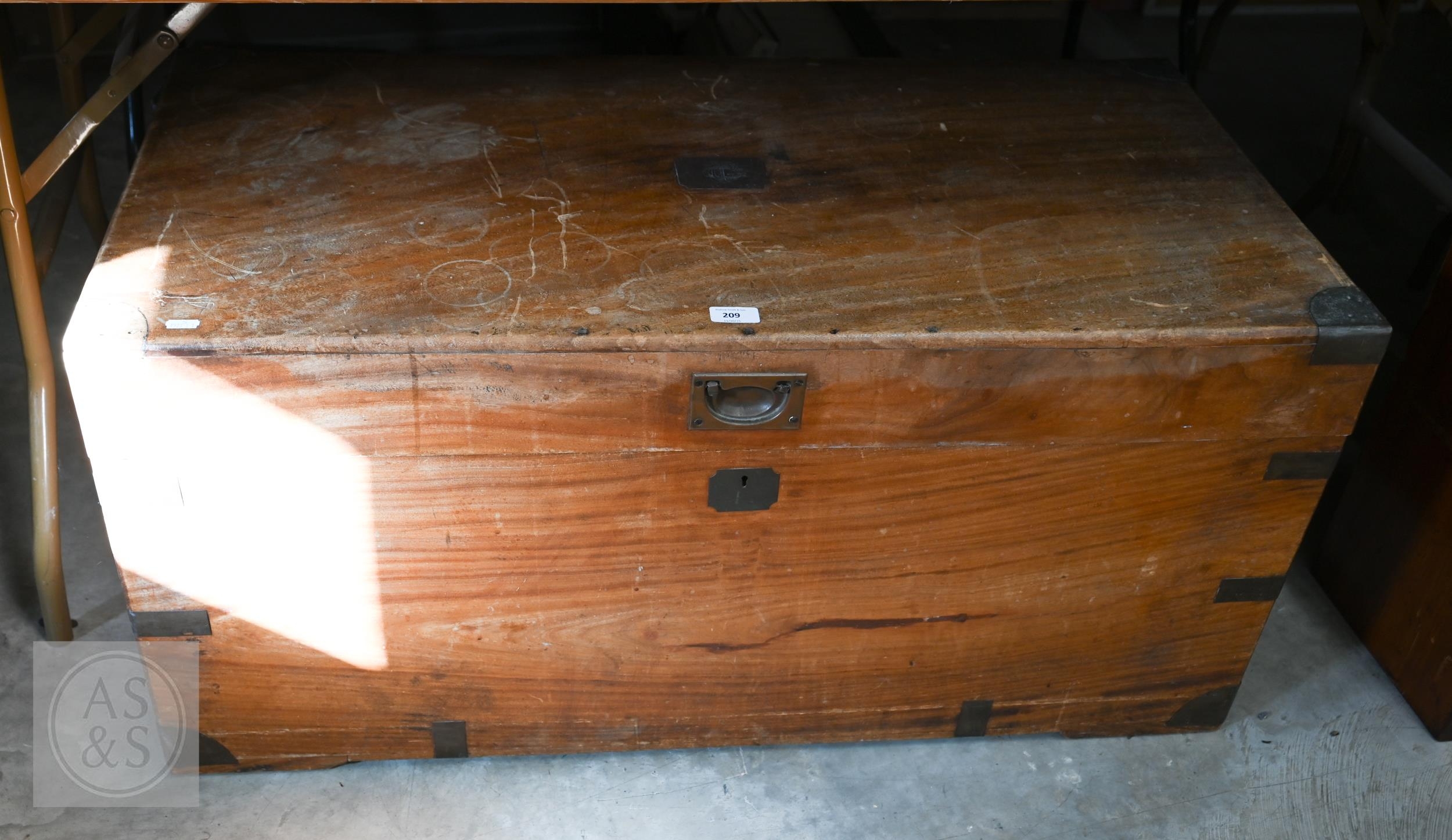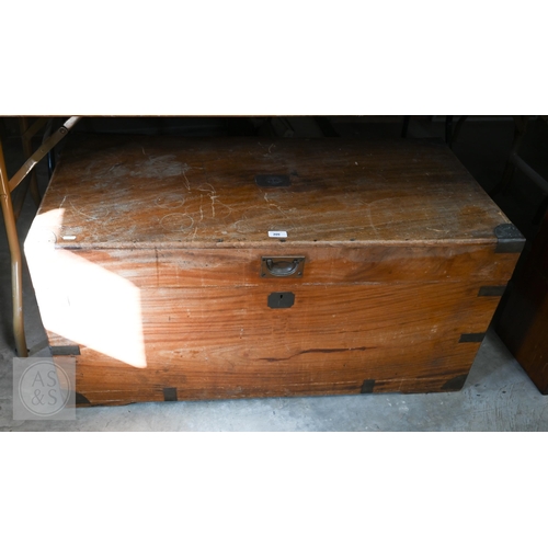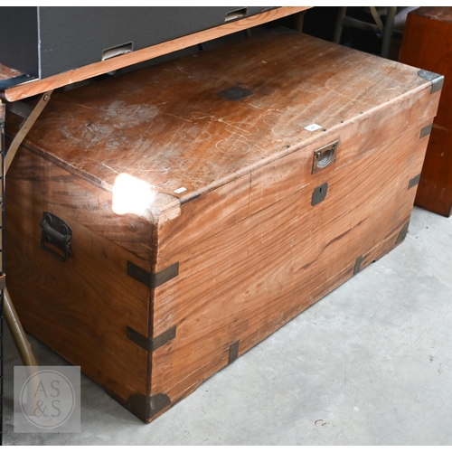 A 19th century camphorwood brass mounted campaign chest a/f, 103 cm w x 52 cm d x 49 cm h