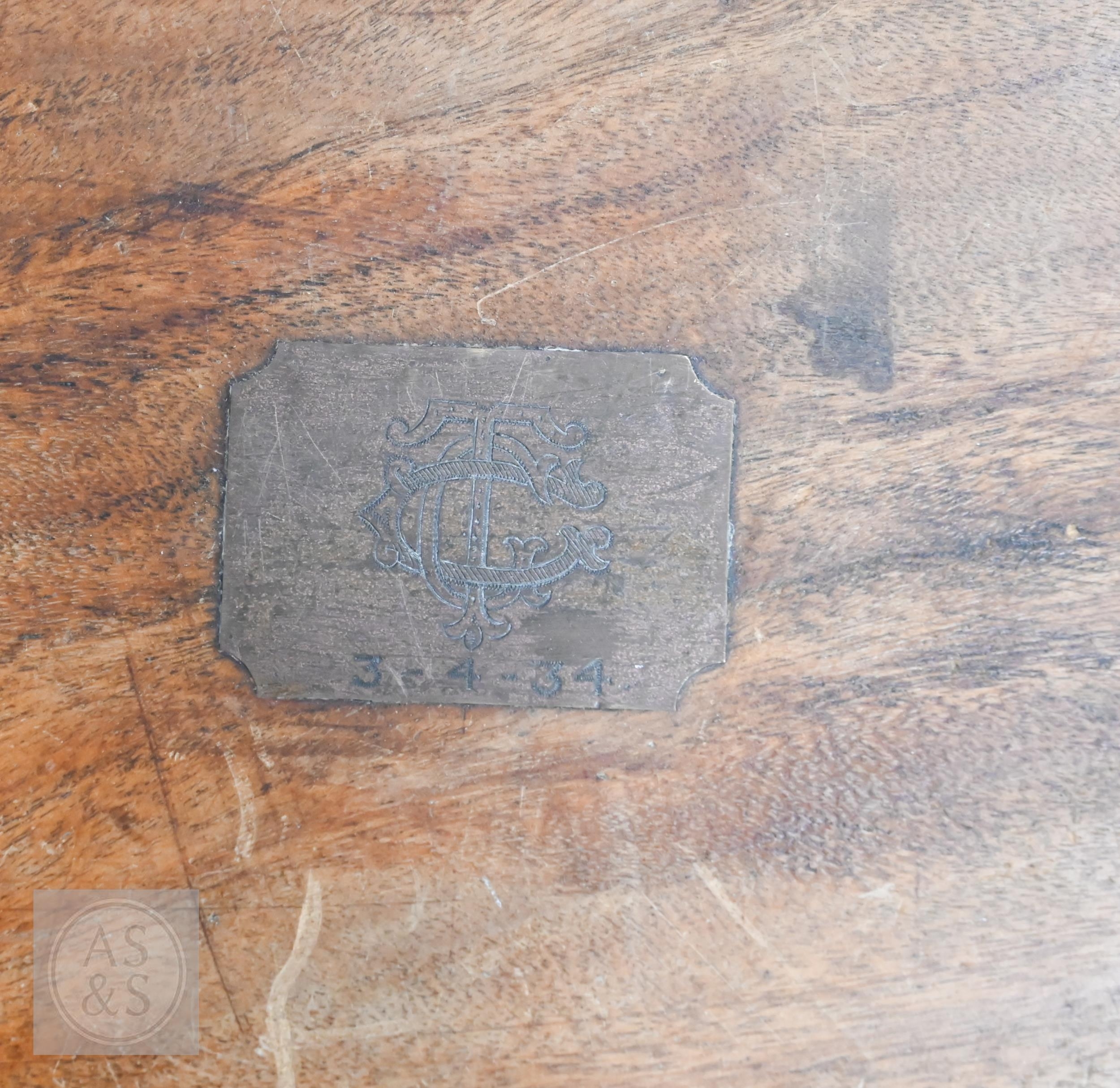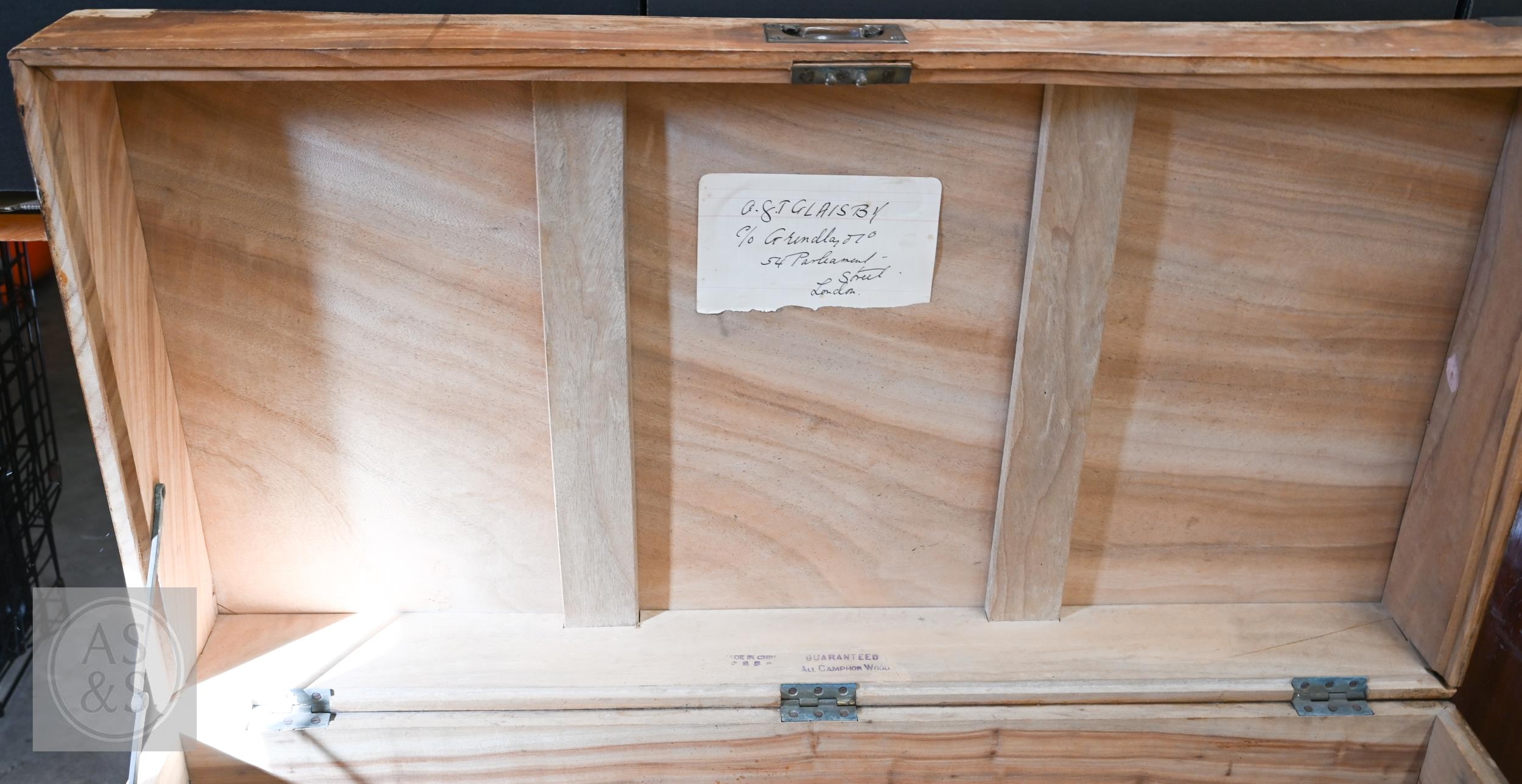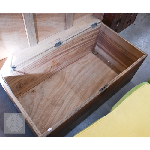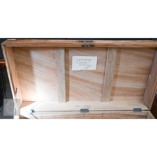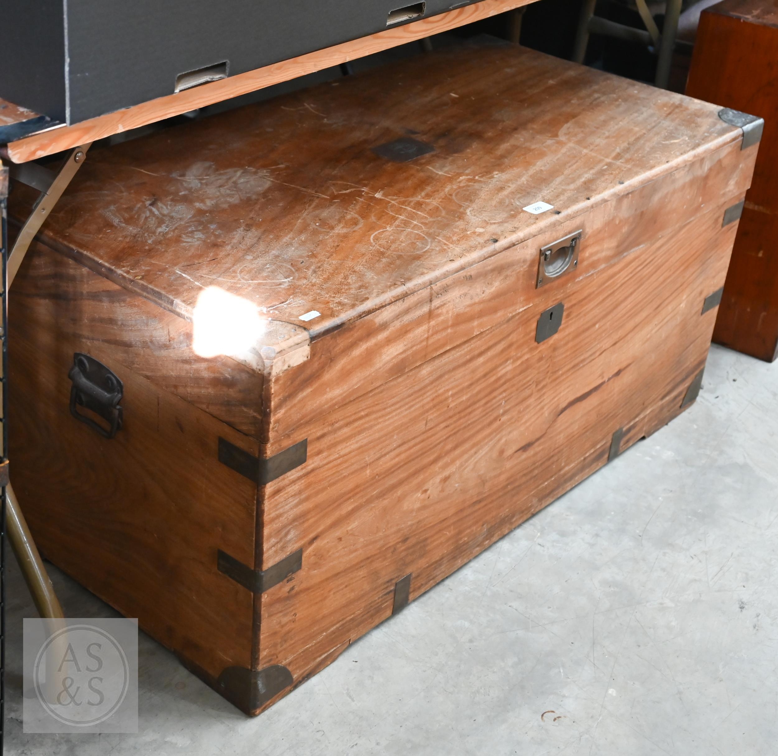 A 19th century camphorwood brass mounted campaign chest a/f, 103 cm w x 52 cm d x 49 cm h