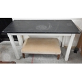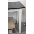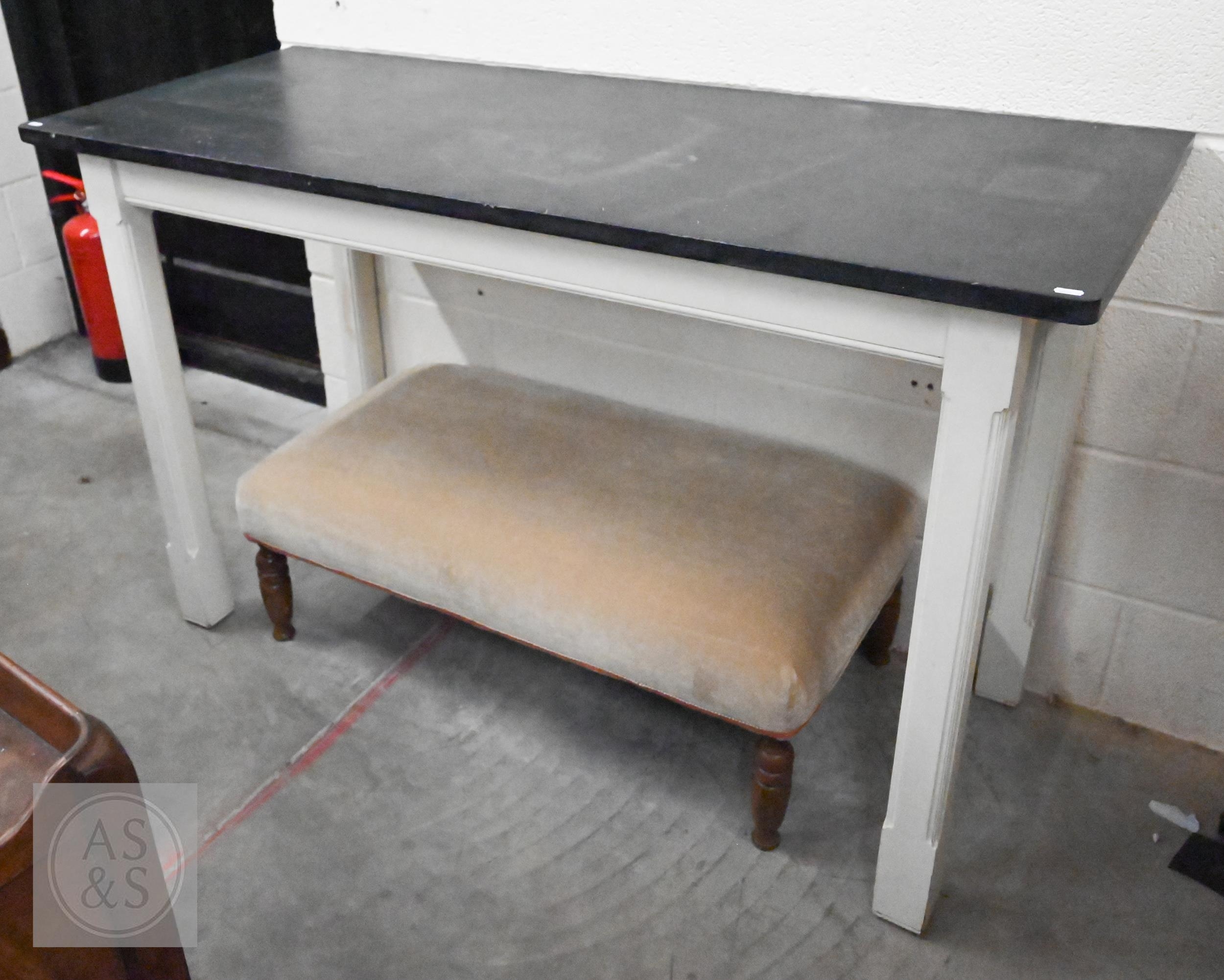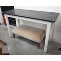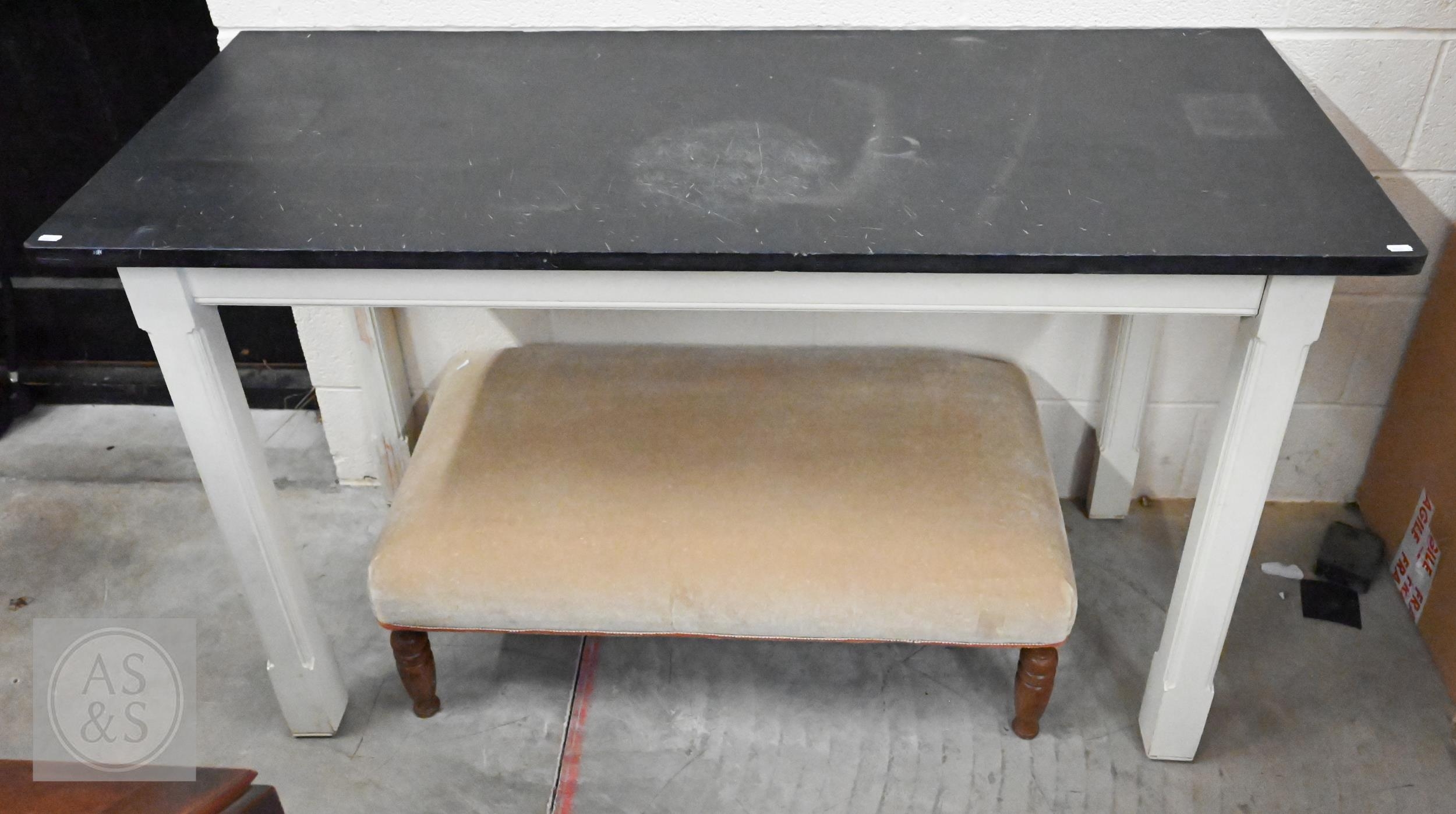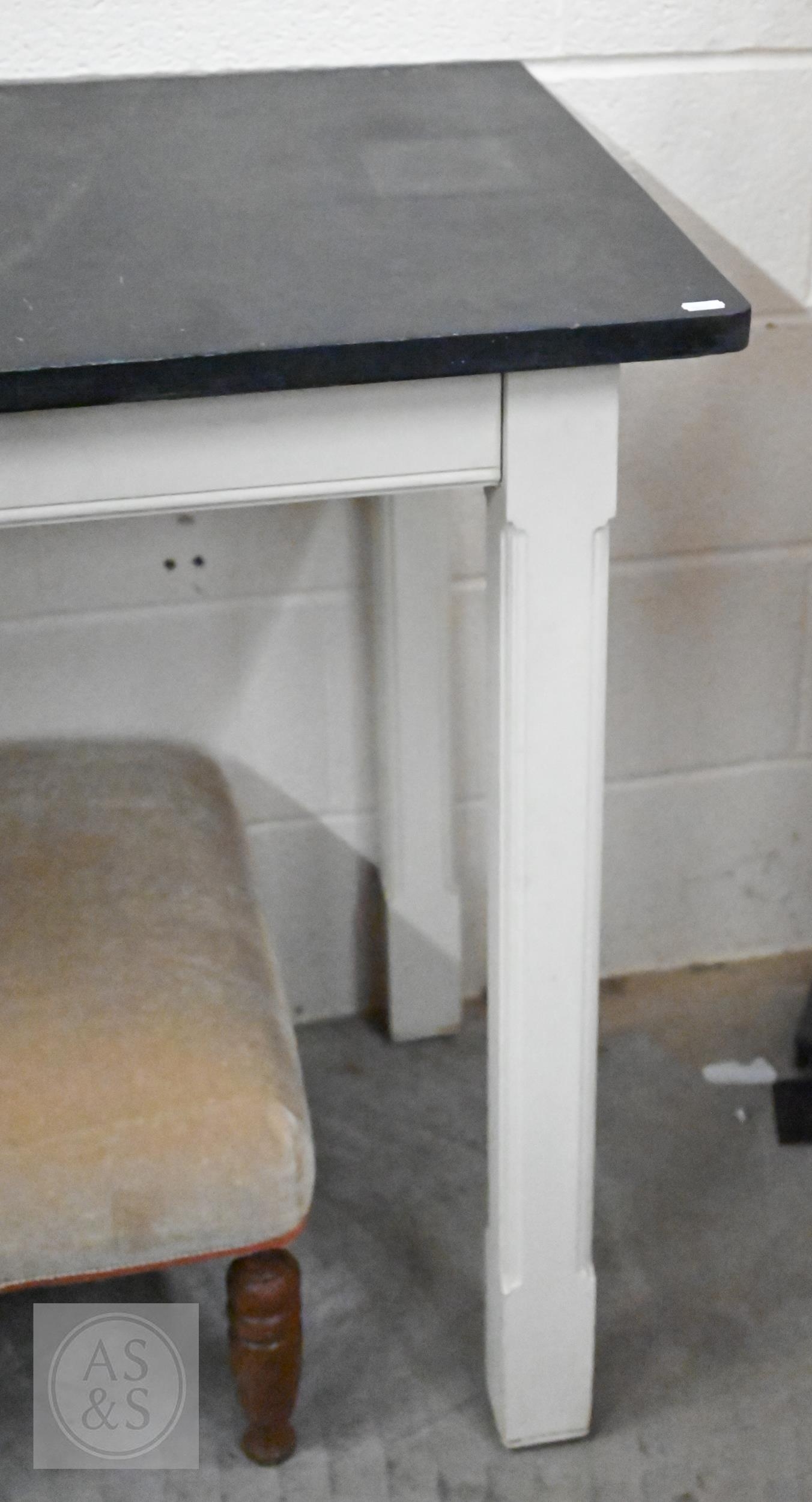 A contemporary console table with slate top on painted base with moulded square supports, 148 x 60 x 92 cm high