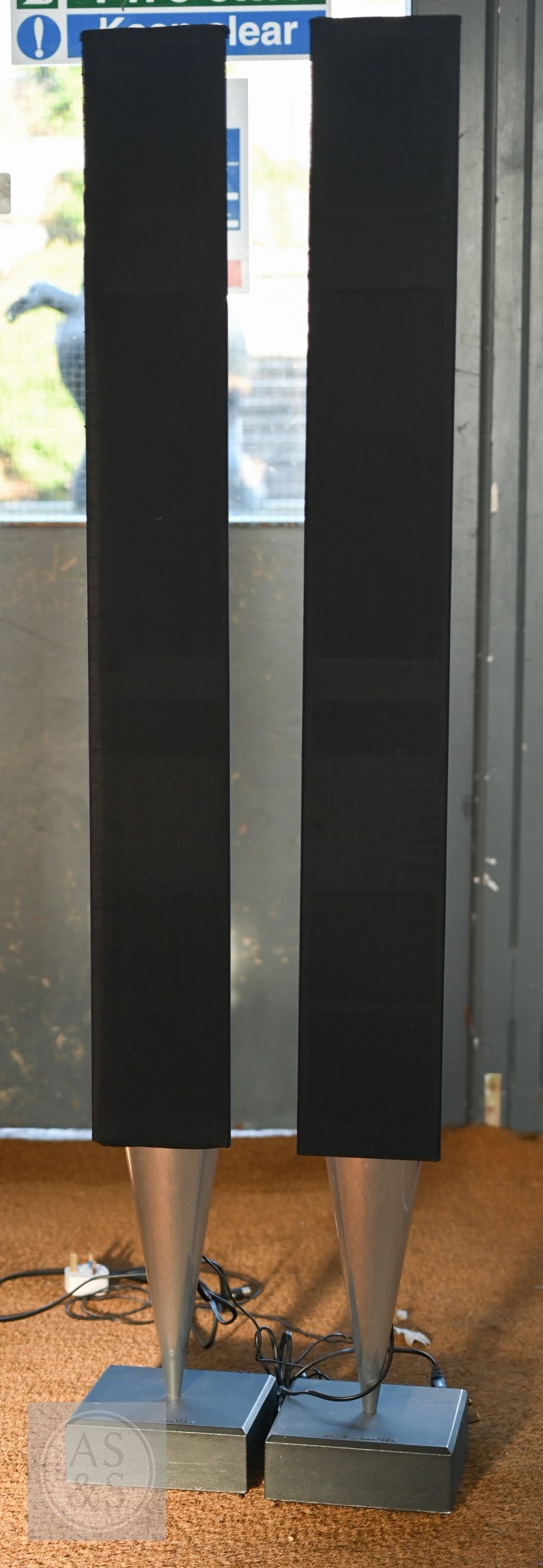 A pair of Bang & Olufsen Beosound 8000 series 6802 floor standing speakers, with power cables, as removed from a private working system