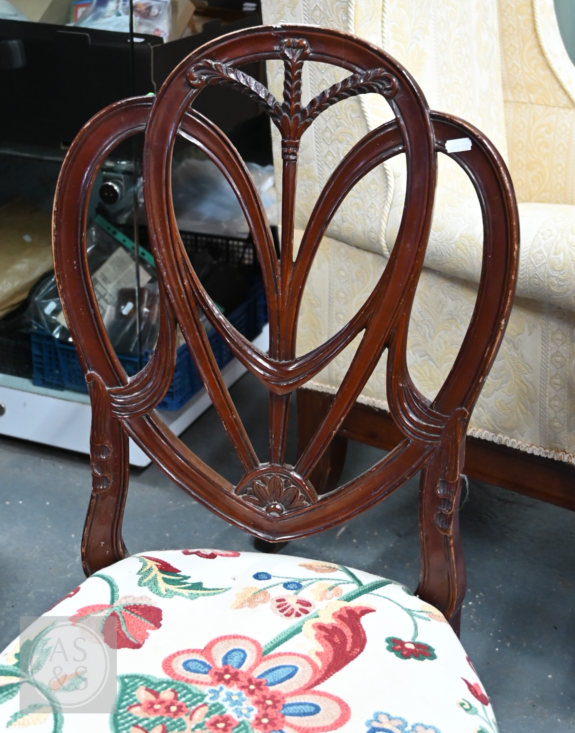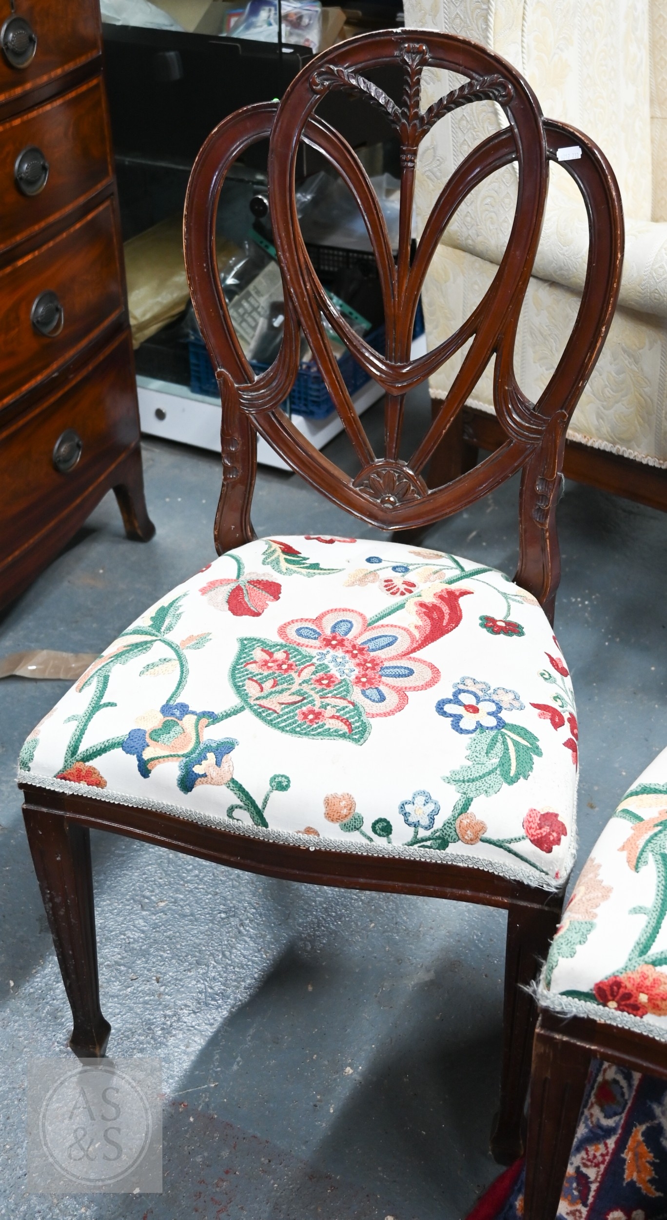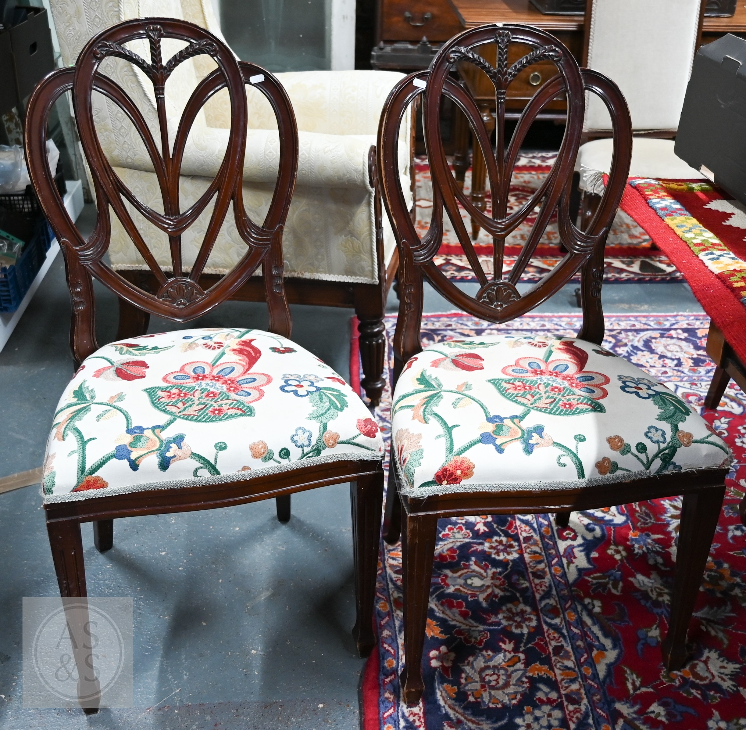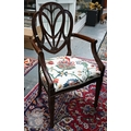 A set of eight Georgian style moulded sheaf-back moulded dining chairs, with floral pattered overstuffed seats, comprising six side chairs, two carvers (8)