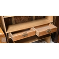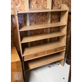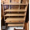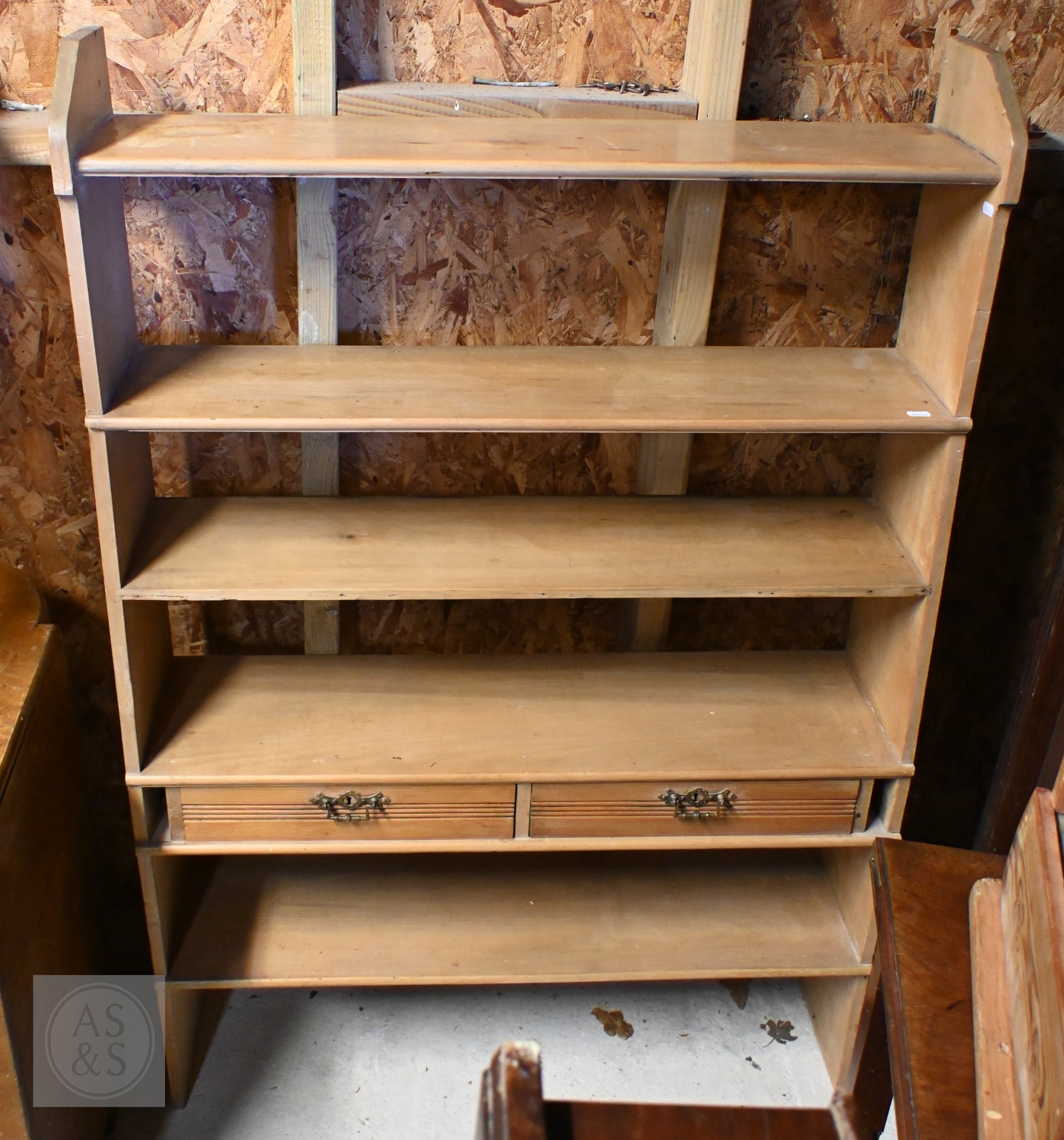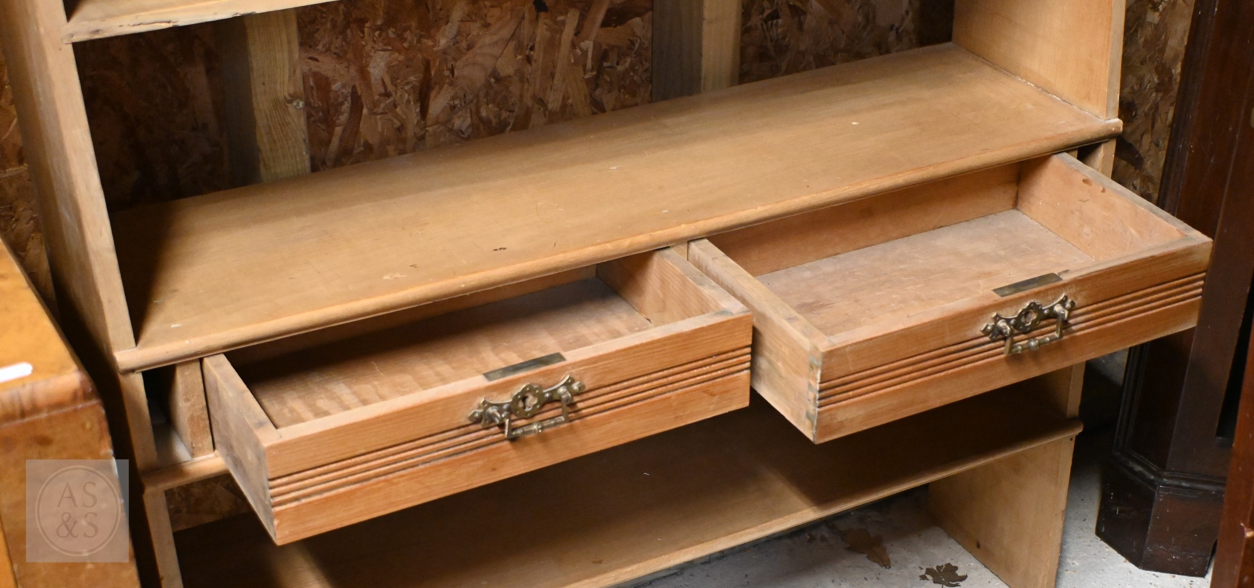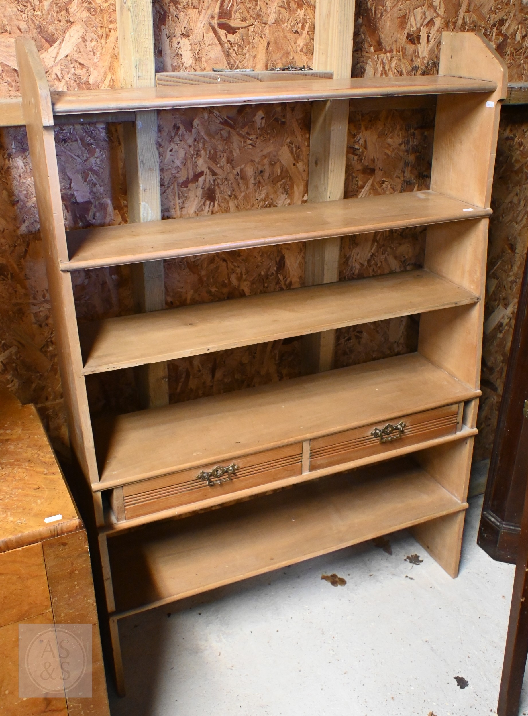 An old satin birch open bookcase/shelf with two short drawers, 92 cm w x 135 cm h