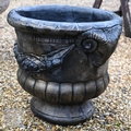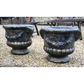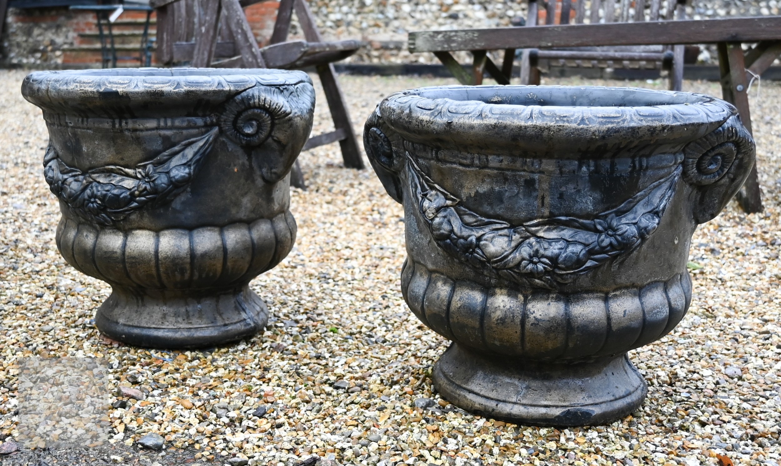 A pair of Georgian style cast composite faux lead finished planters with rams head decoration (2)