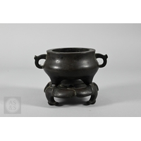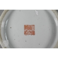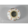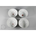 One bowl with a hairline extending down from the rim, two with small rim chips, brush washer is undamaged, all items with some glaze imperfections and light surface wear and wear to enamels