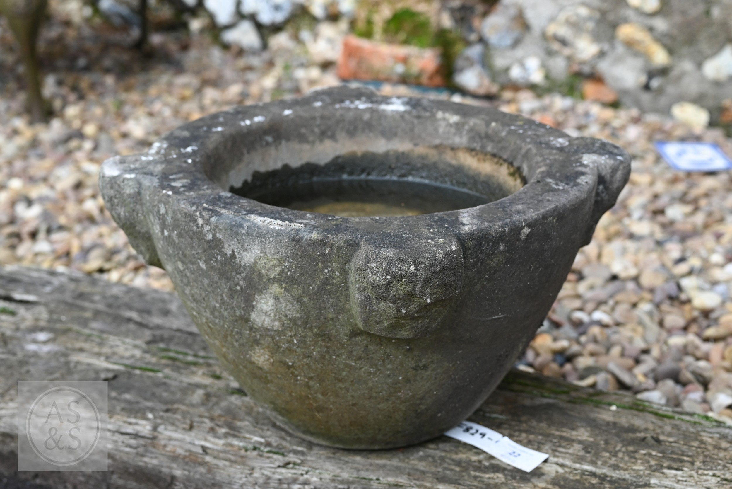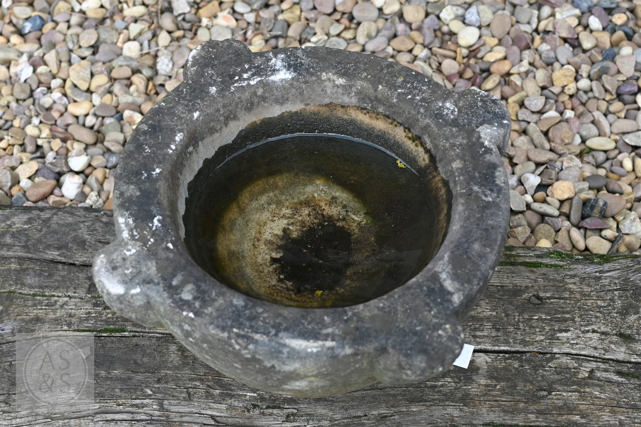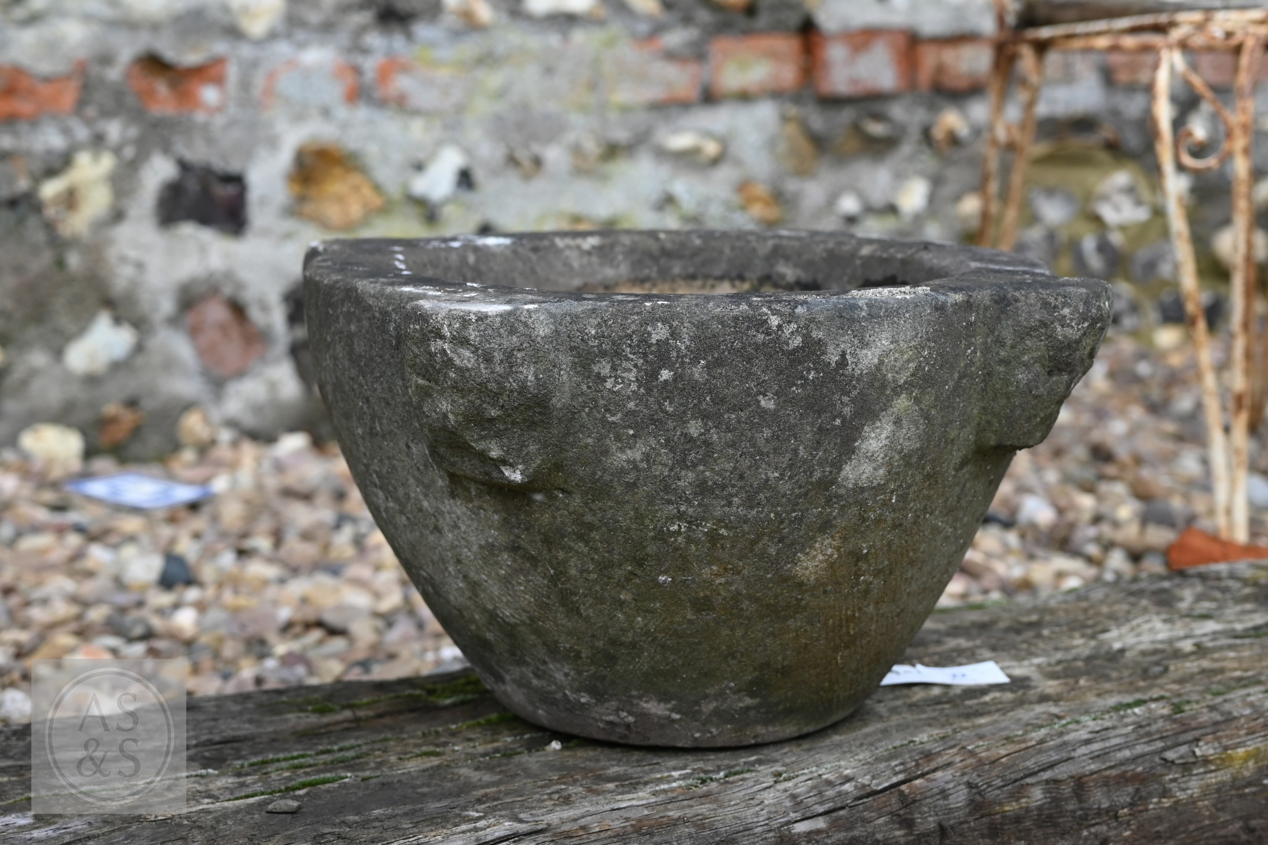 A large weathered antique marble mortar, 40 cm dia. x 21 cm h