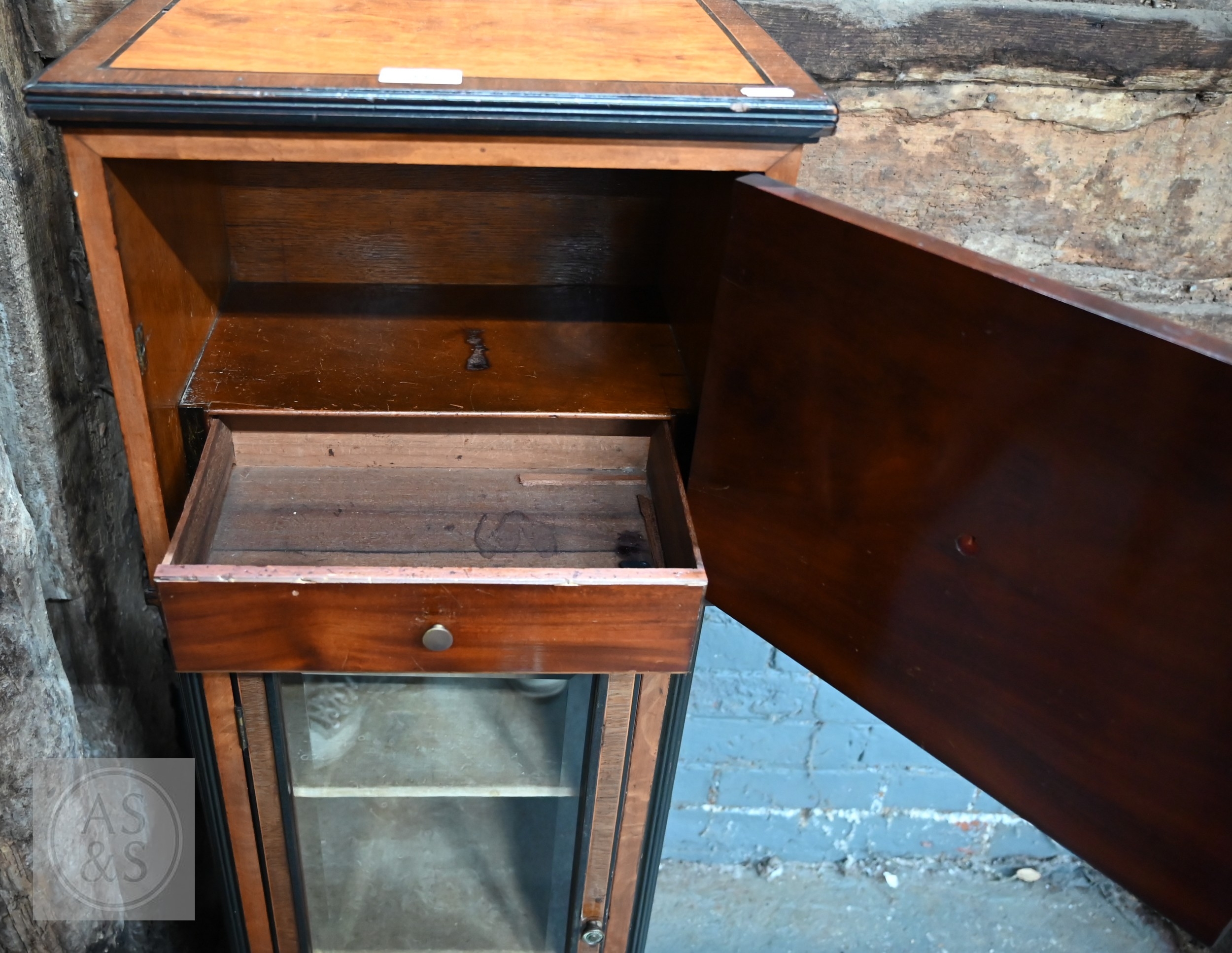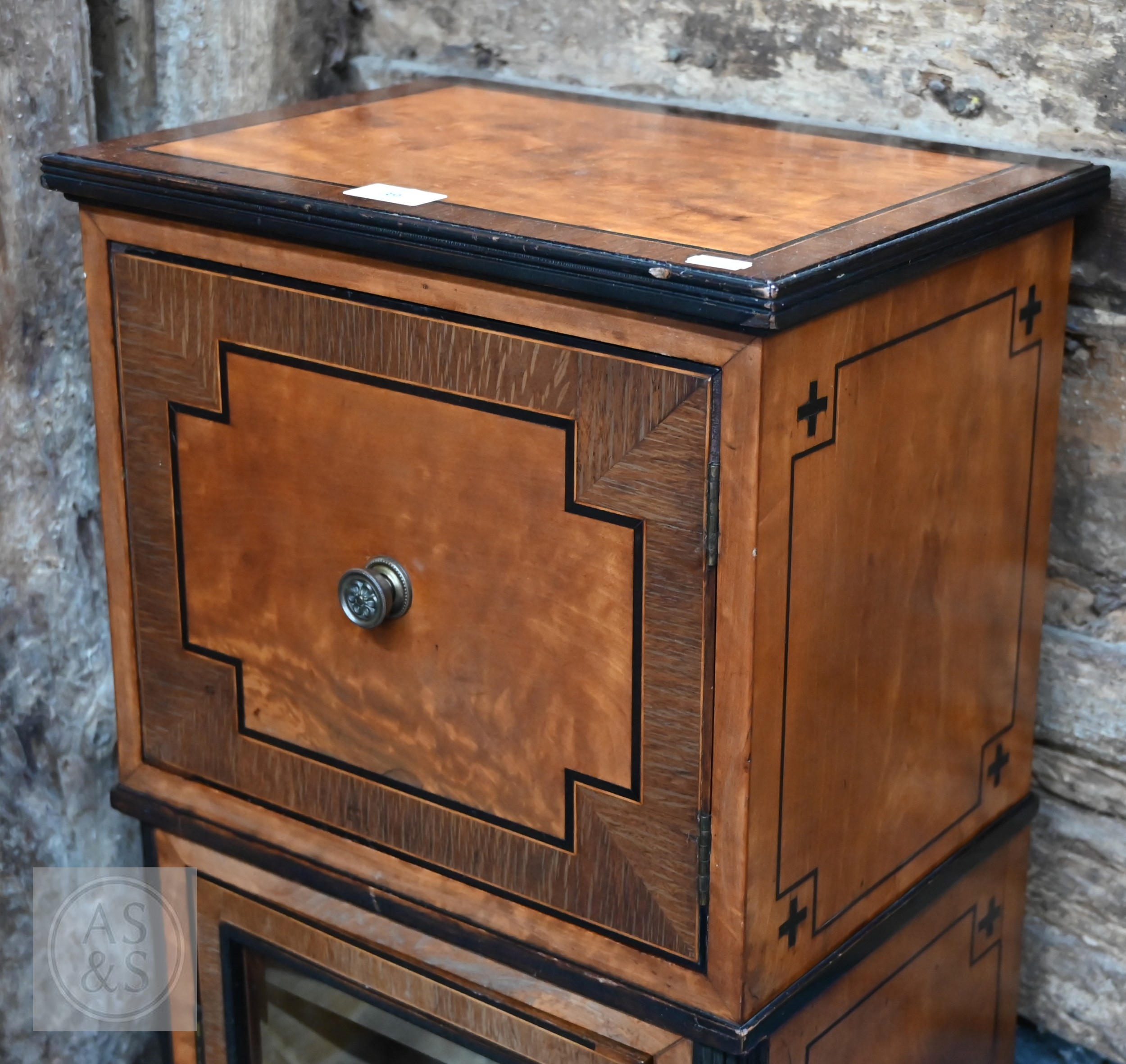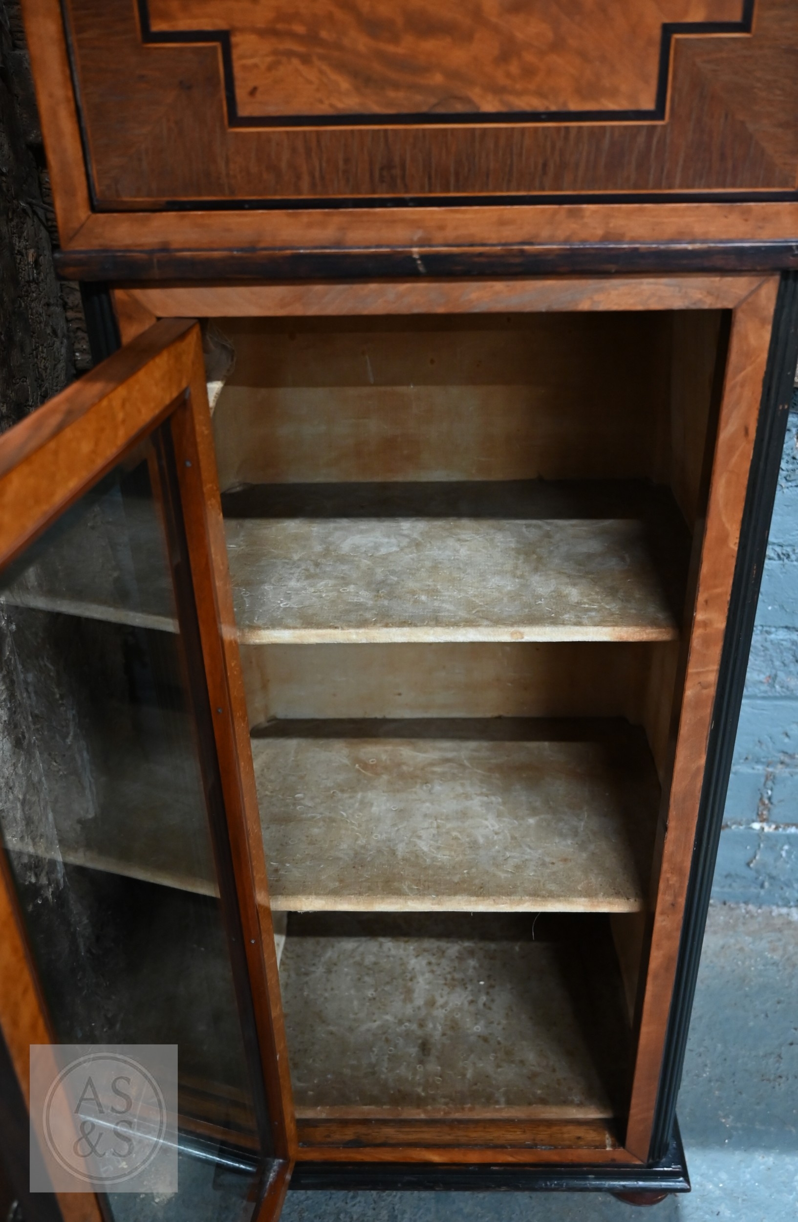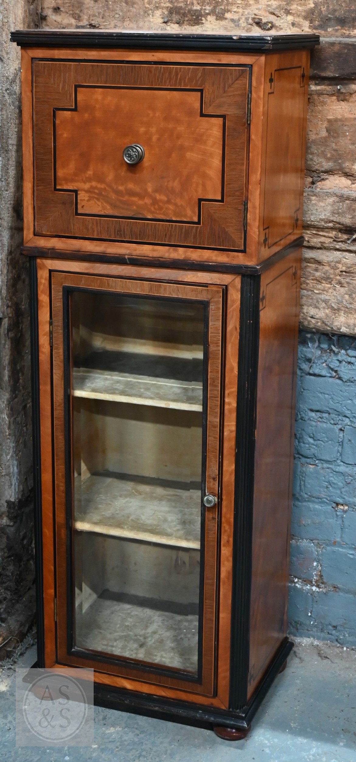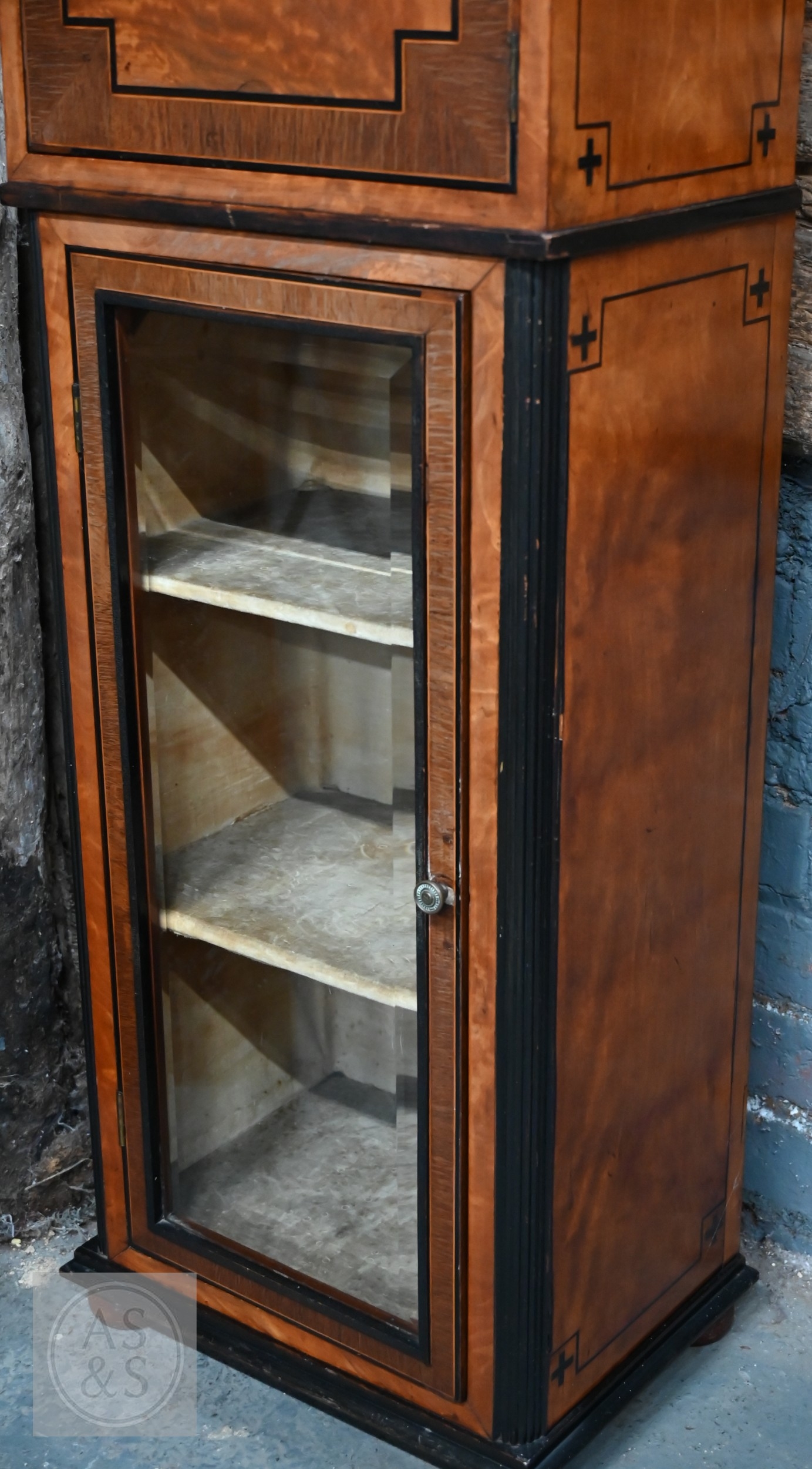 An Edwardian cockbeaded satinwood cupboard on glazed door cabinet and fully-lined shelved interior, on bun feet, 37.5 x 27 x 104 cm high