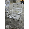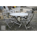 Two chairs have bar detached and one is missing, table sturdy, weathered condition overall