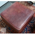 A contemporary dark brown leather three piece suite, comprising a three seat sofa, 188 cm w x 92 cm x 90 cm h, the seat 65 cm d x 46 cm h, with a matching pair of armchairs and storage ottoman, (4)