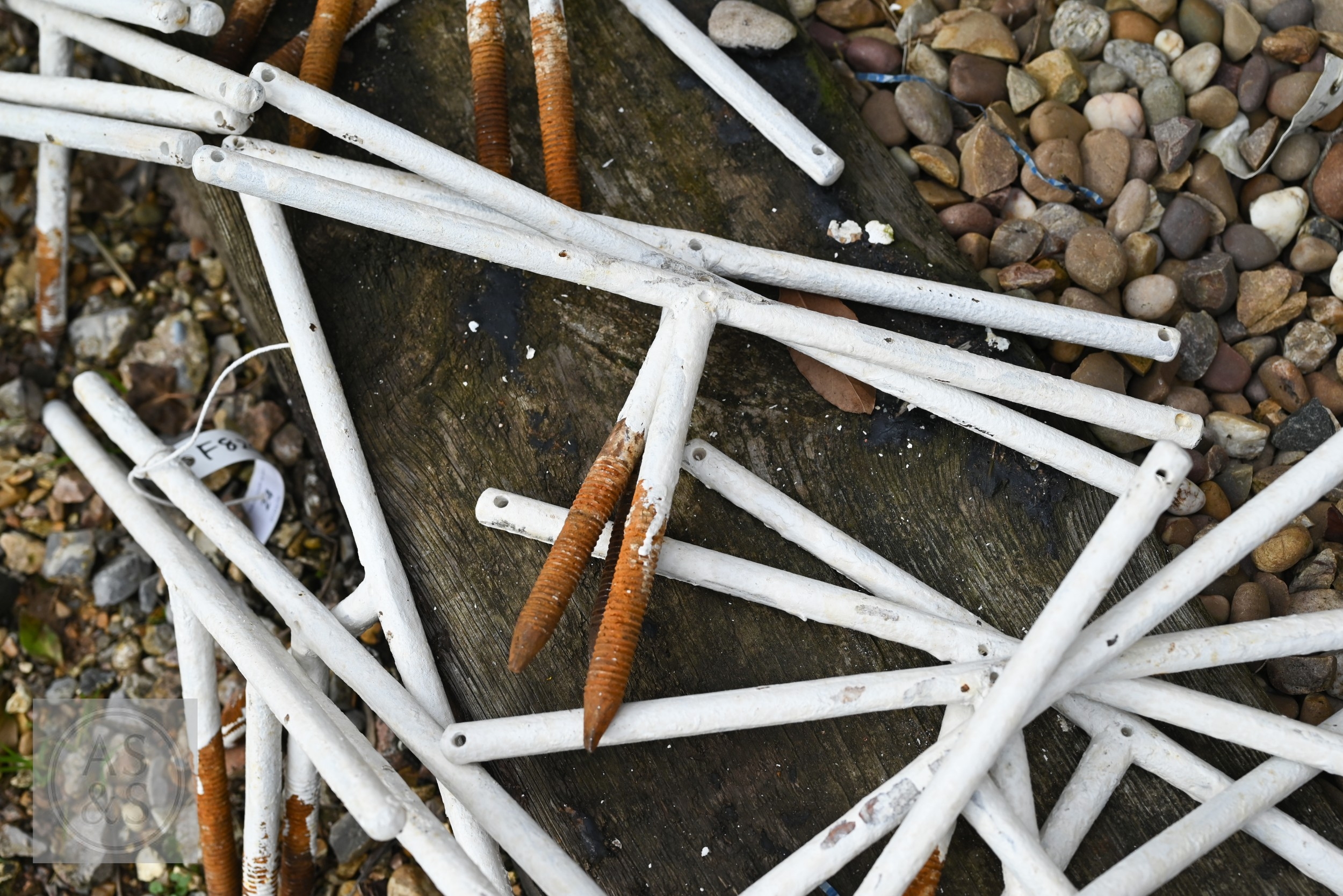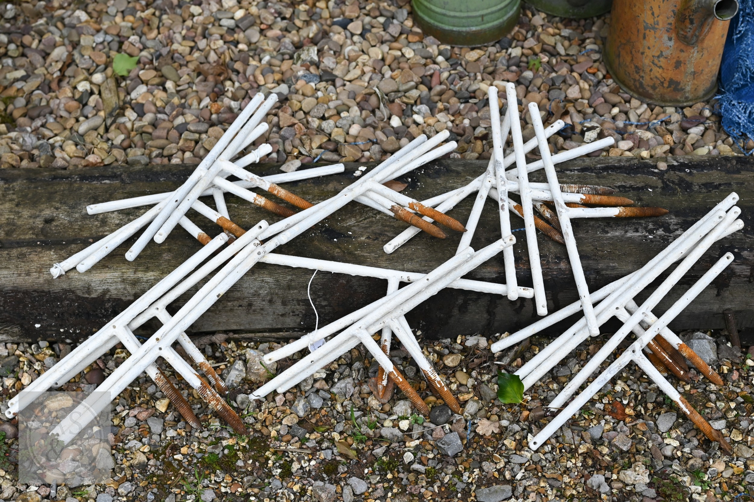 A quantity of Victorian iron 'T-bar' screw in vine wire training brackets, painted white (28)