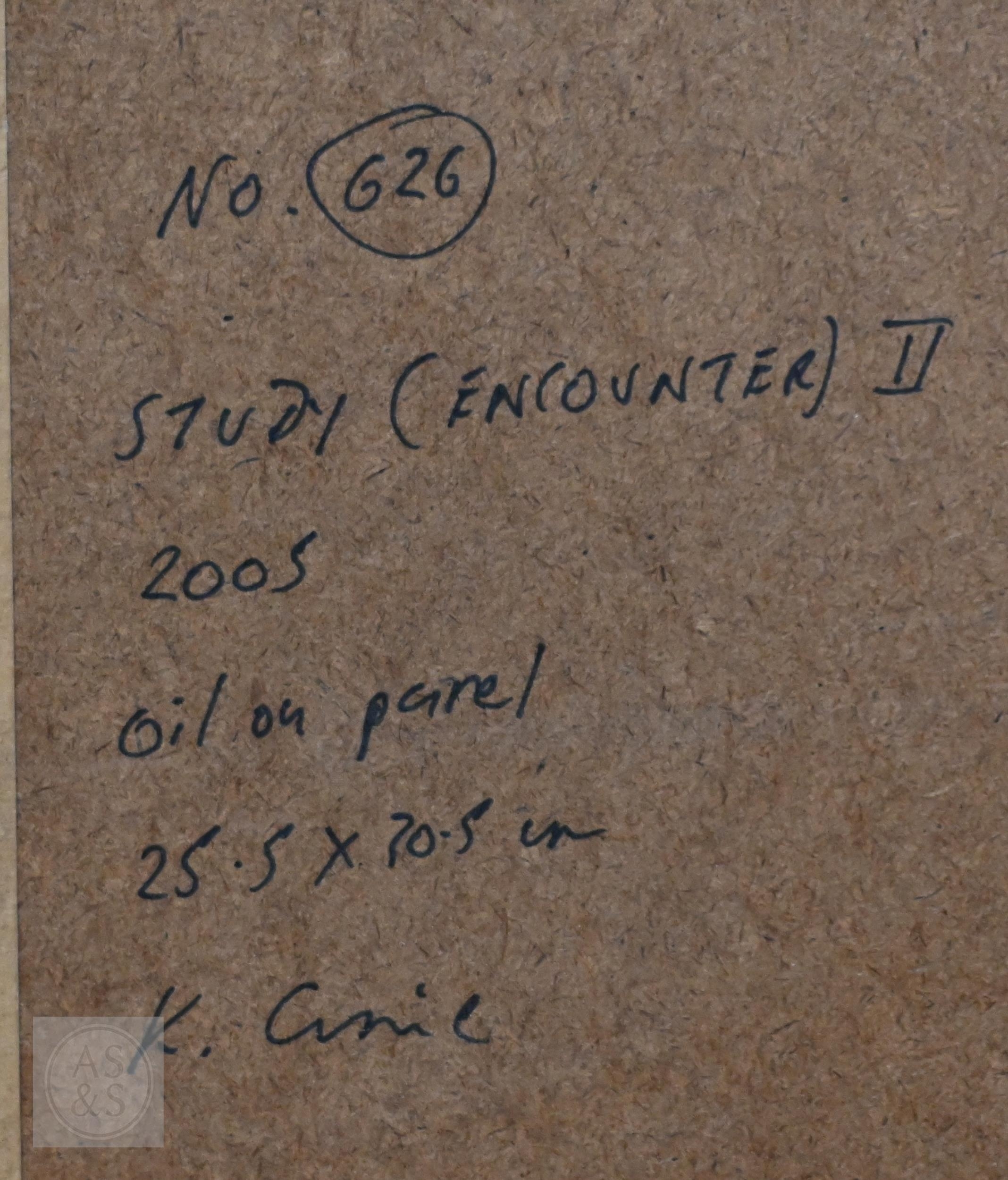 Ken Currie (b 1960) - 'Study (Encounter II)', oil on panel, signed to reverse, 25 x 20 cm