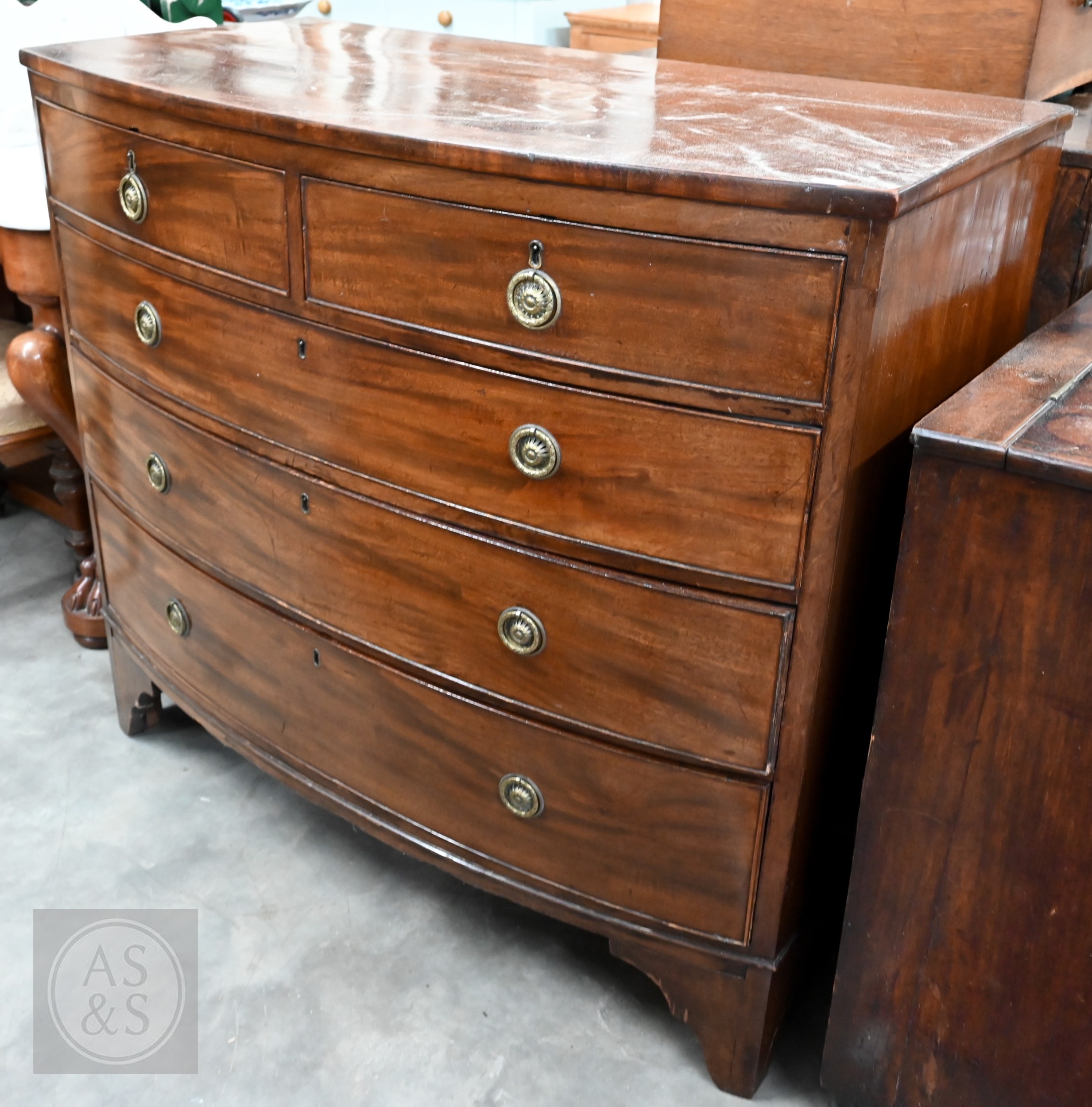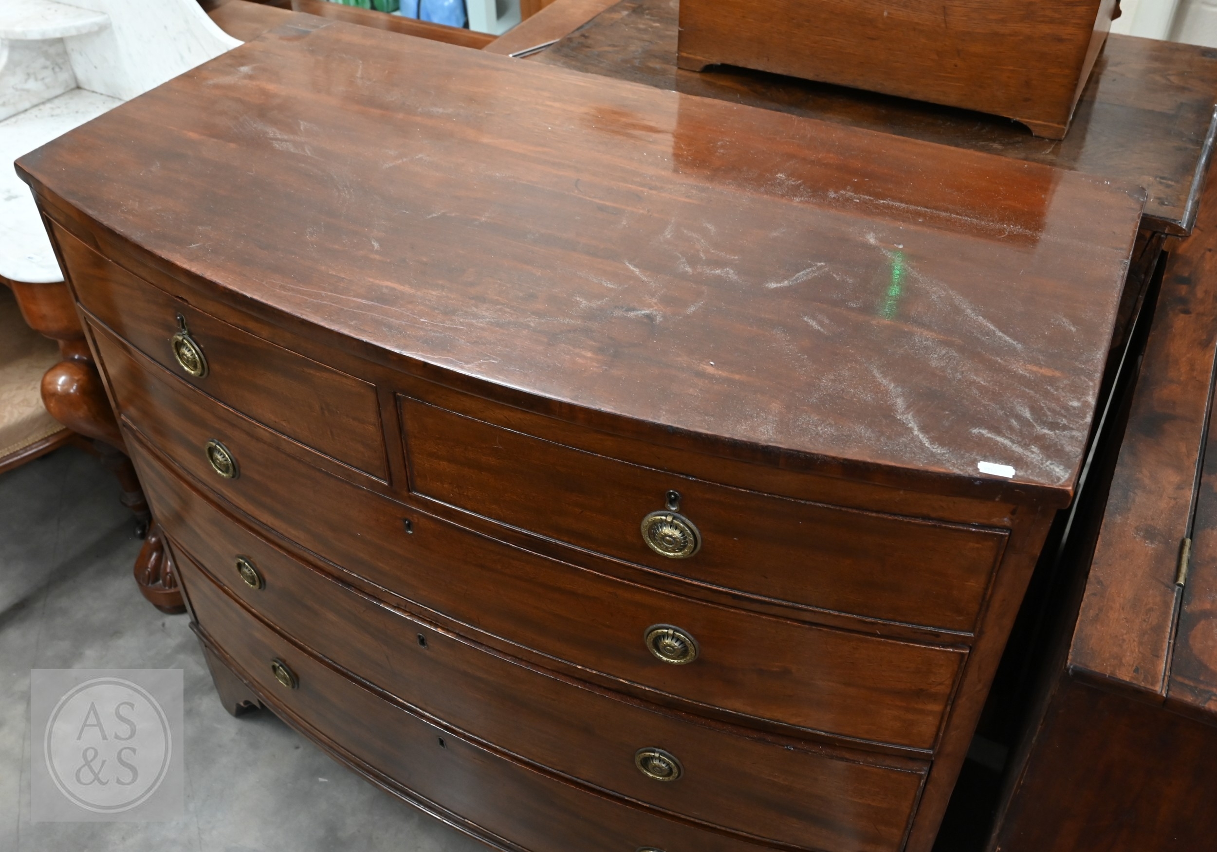 A 19th century mahogany bowfront chest of two short over three long drawers