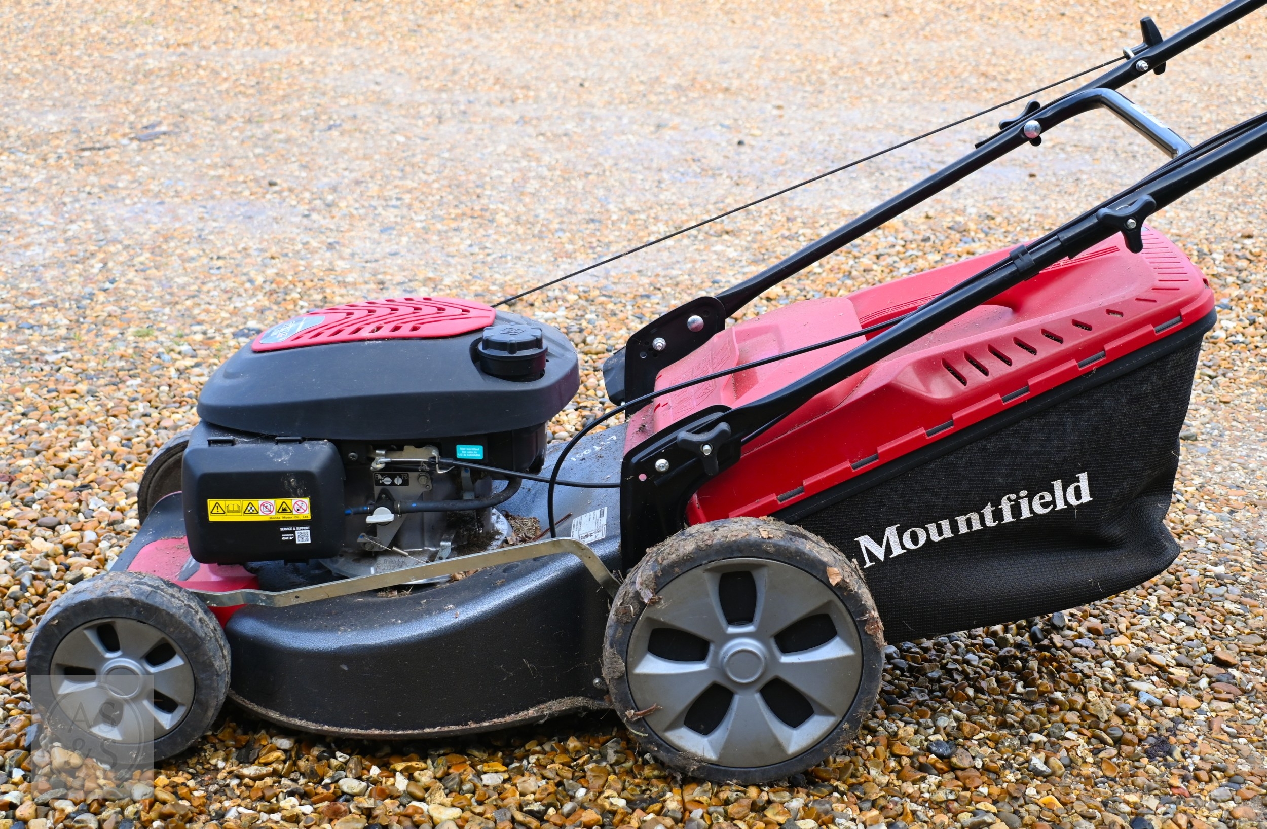 A Mountford SP46 Elite self propelling lawn mower, with Honda petrol engine, with grass box