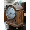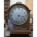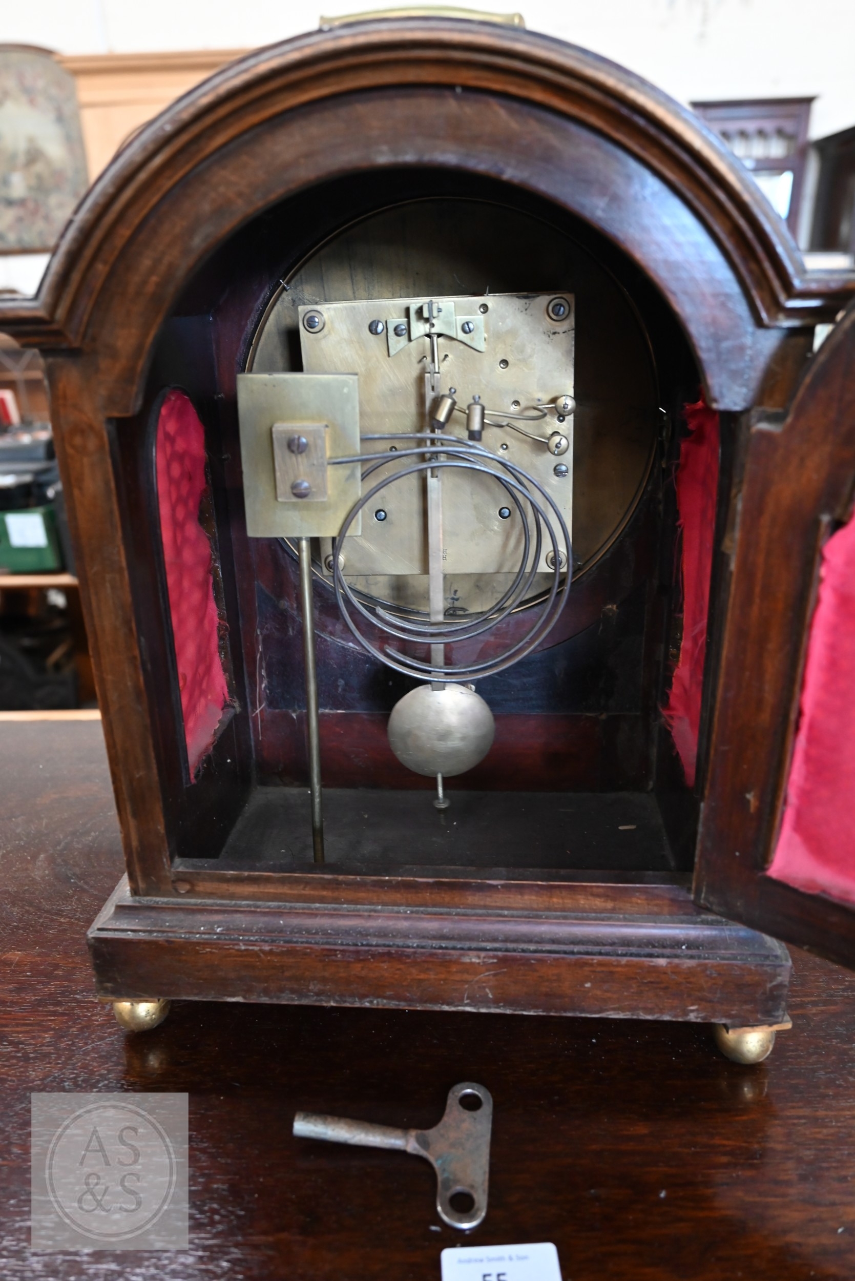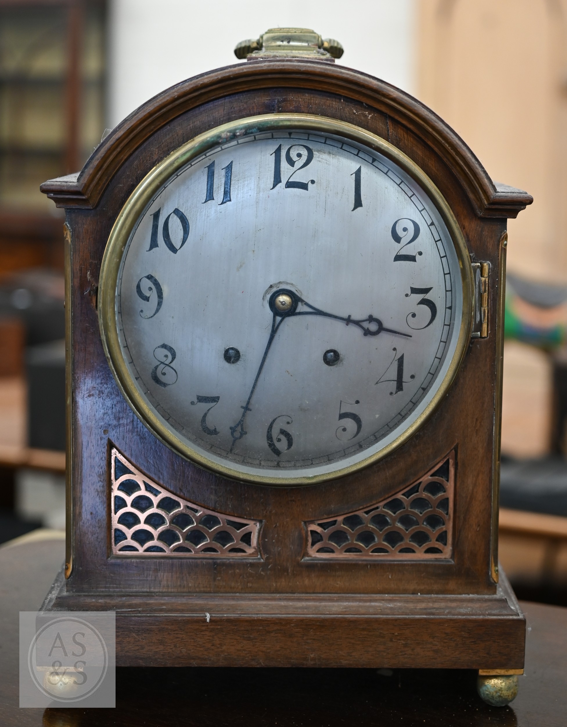 An early 20th century german Winterhalder & Hofmeiser walnut case mantel clock with eight day movement striking on coiled gongs c/w pendulum and key, 40 cm high