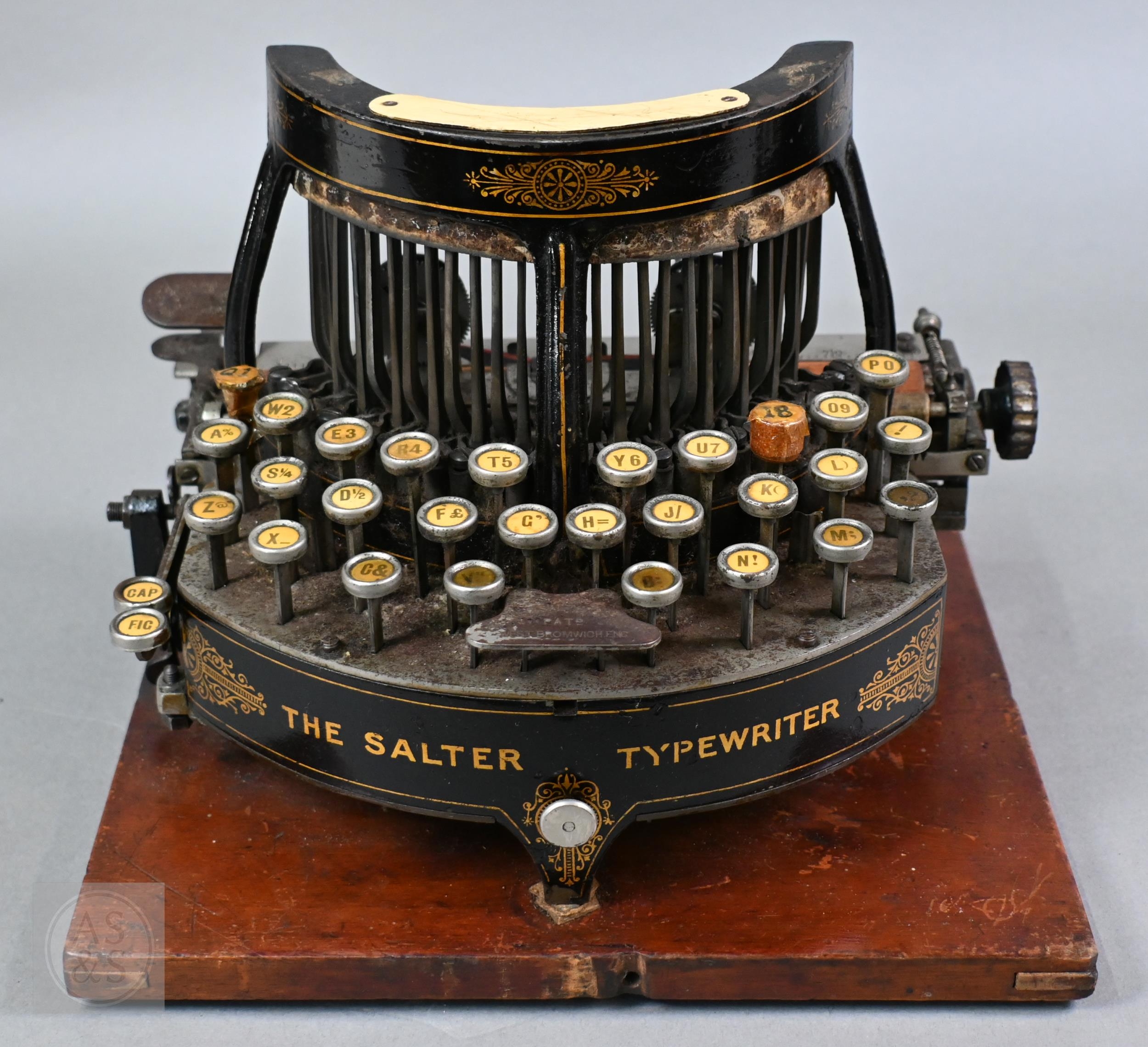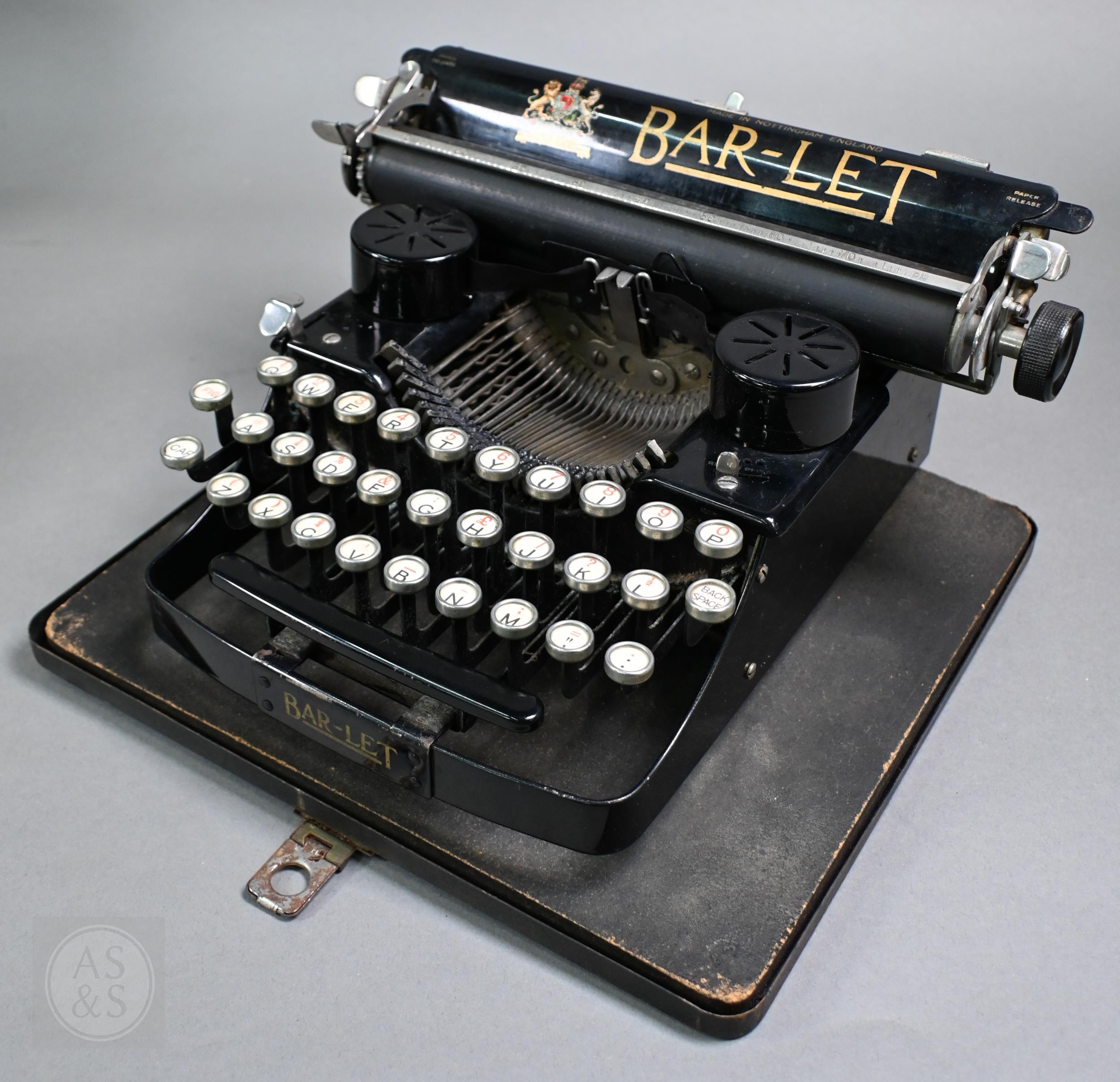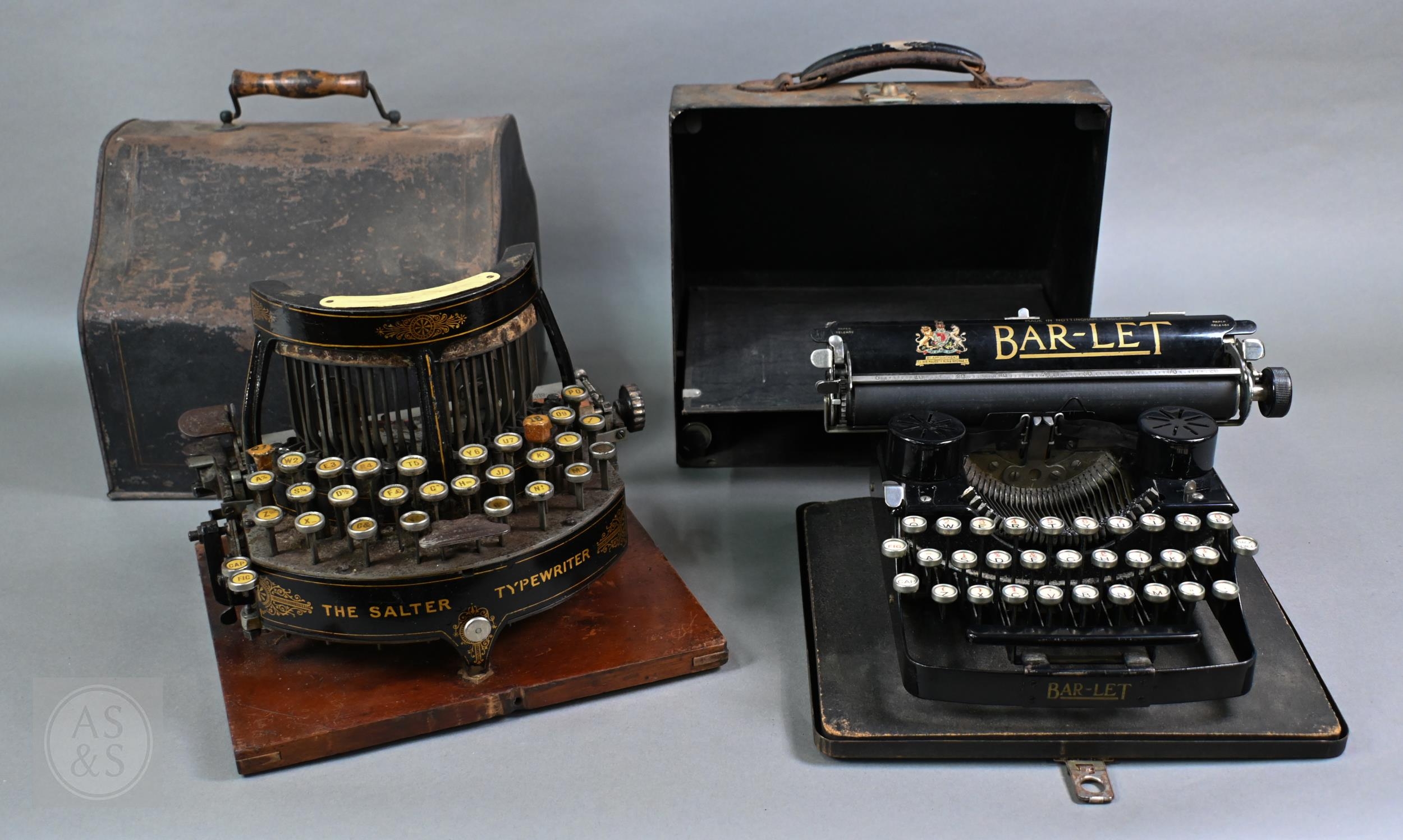A 19th Century Salter typewriter with tin cover, to/w a John Jardine (Nottingham) Bar-Let typewriter in tin case (2)