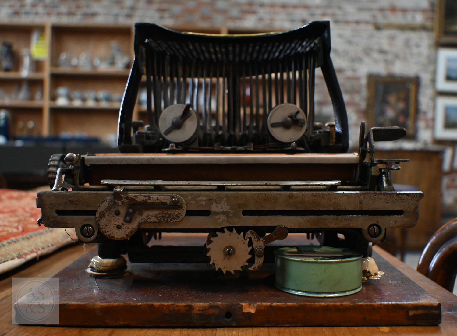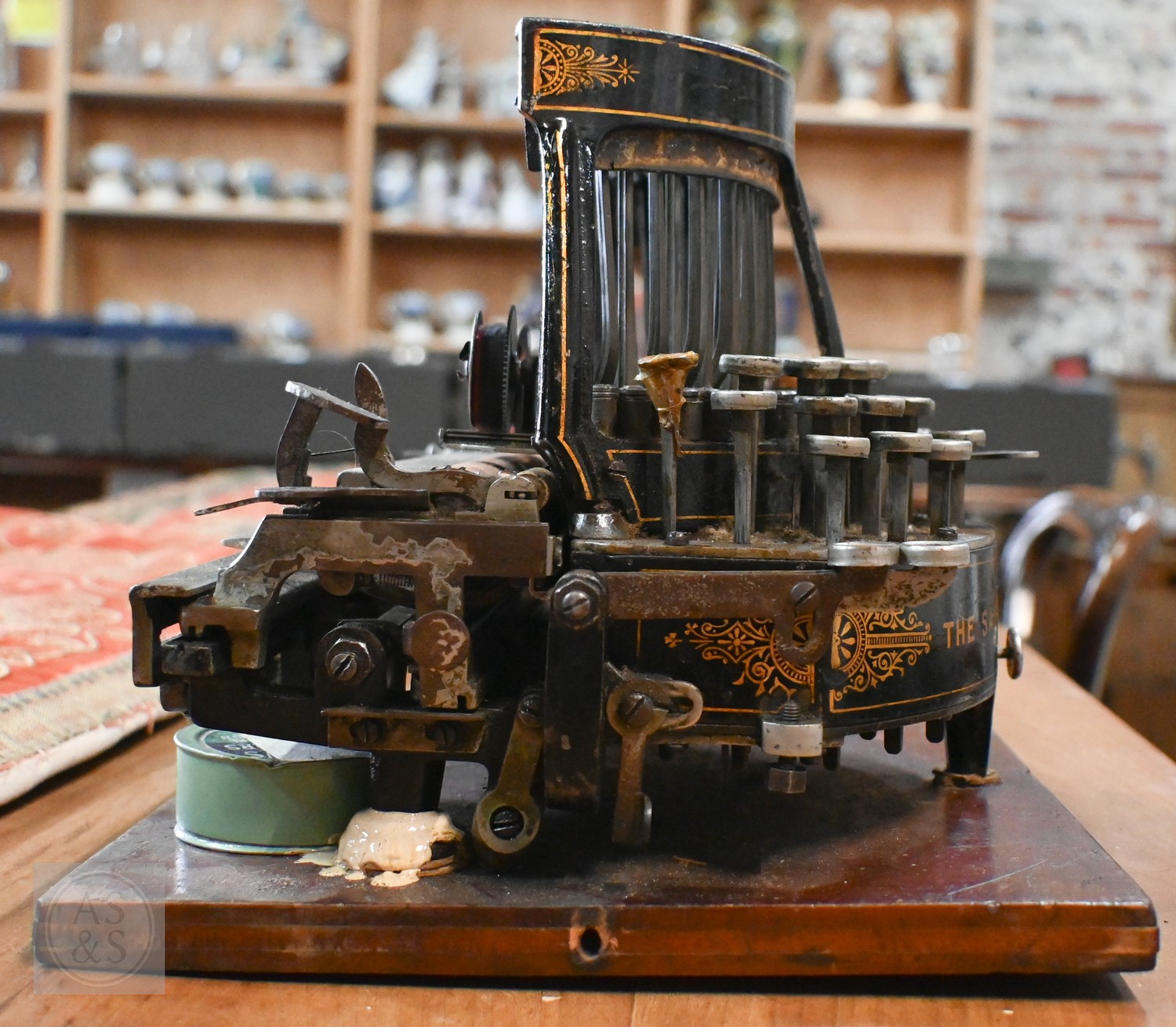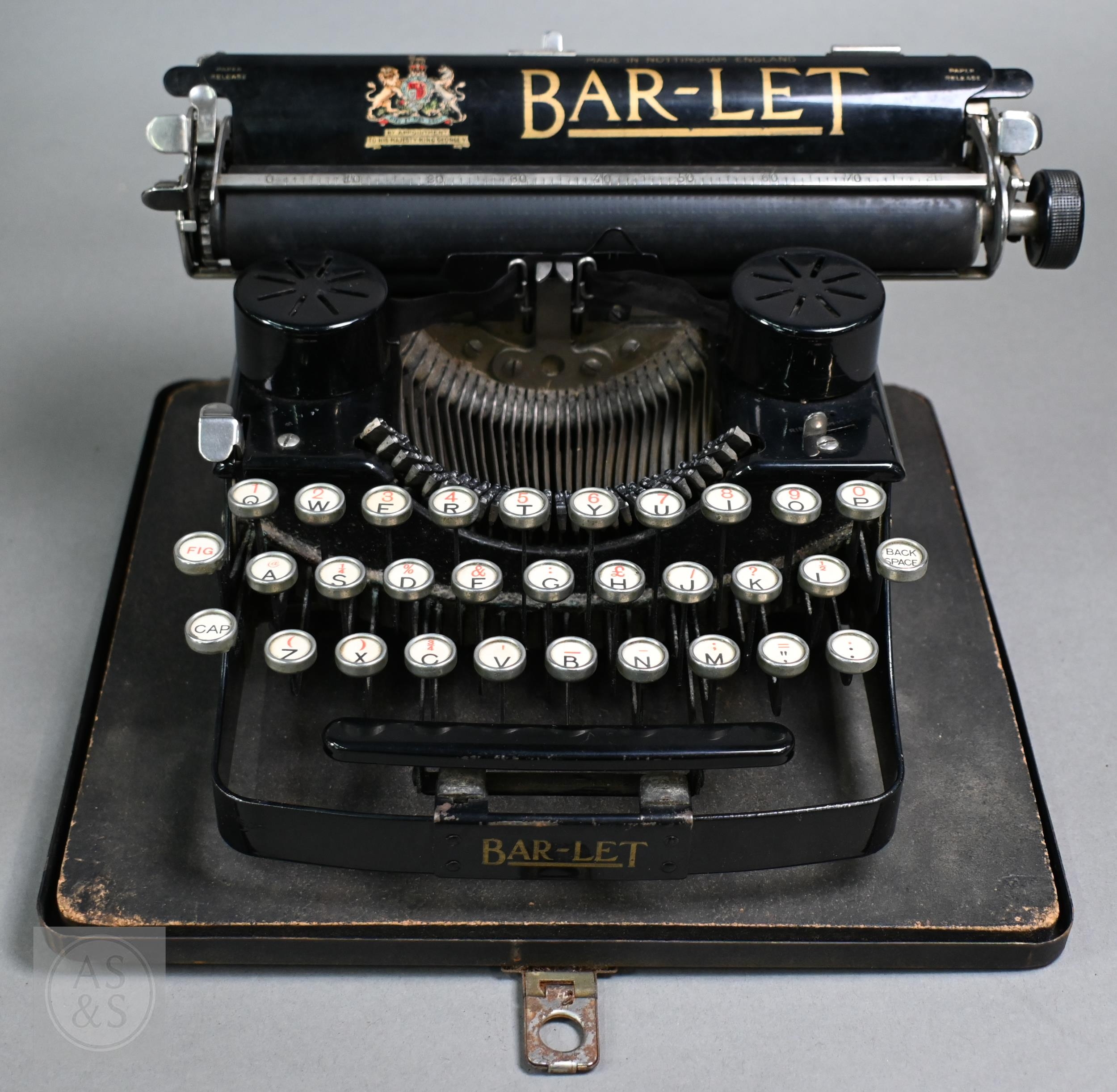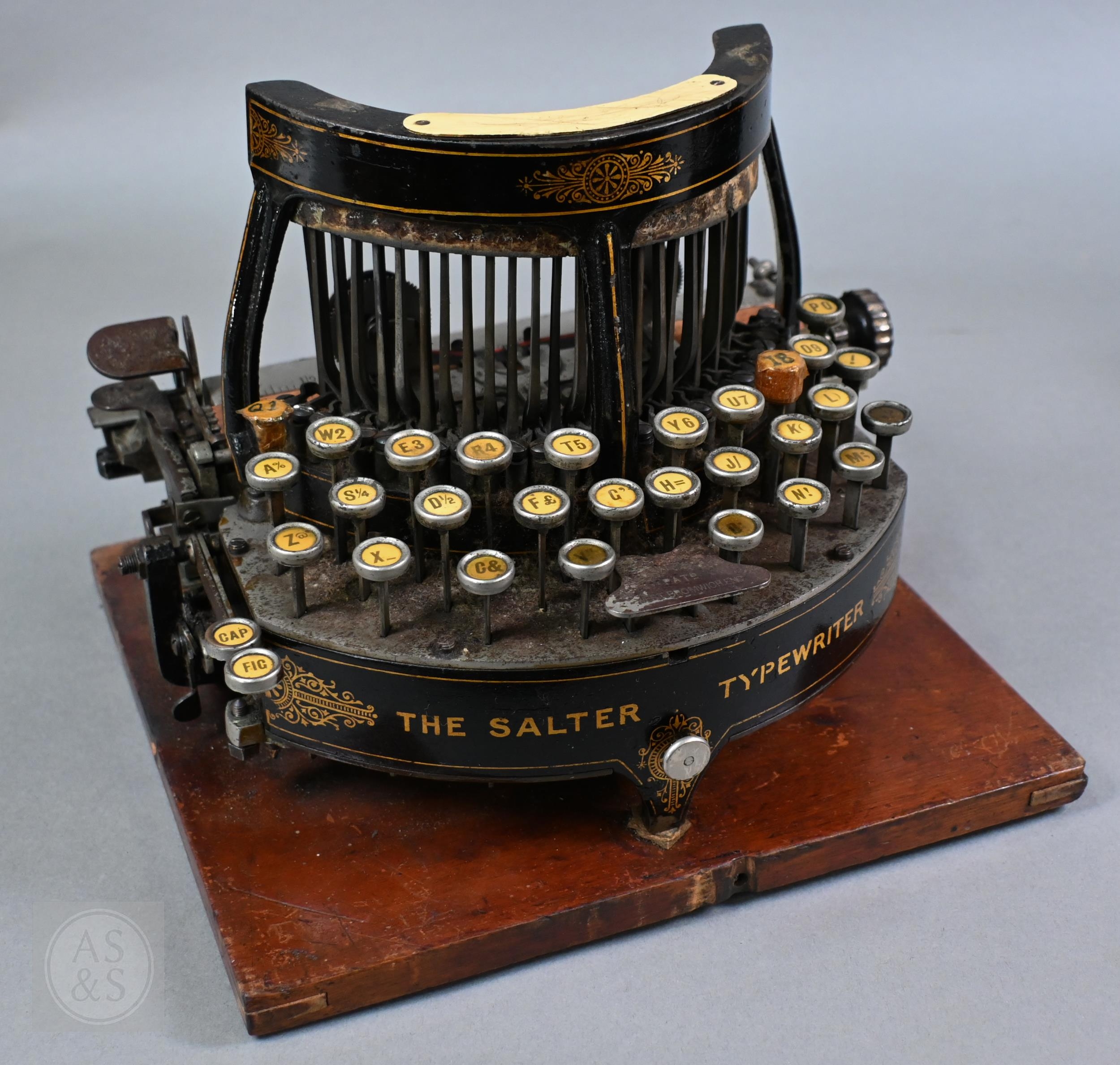 A 19th Century Salter typewriter with tin cover, to/w a John Jardine (Nottingham) Bar-Let typewriter in tin case (2)