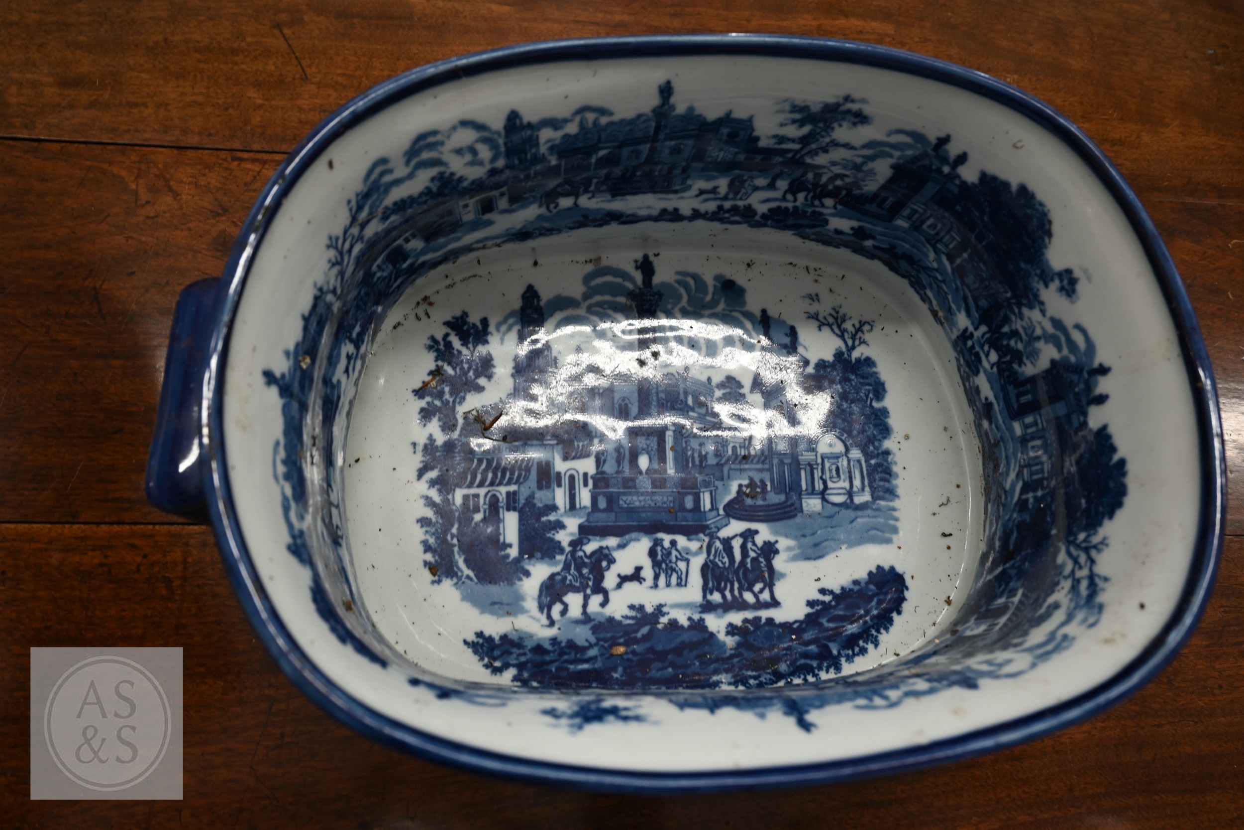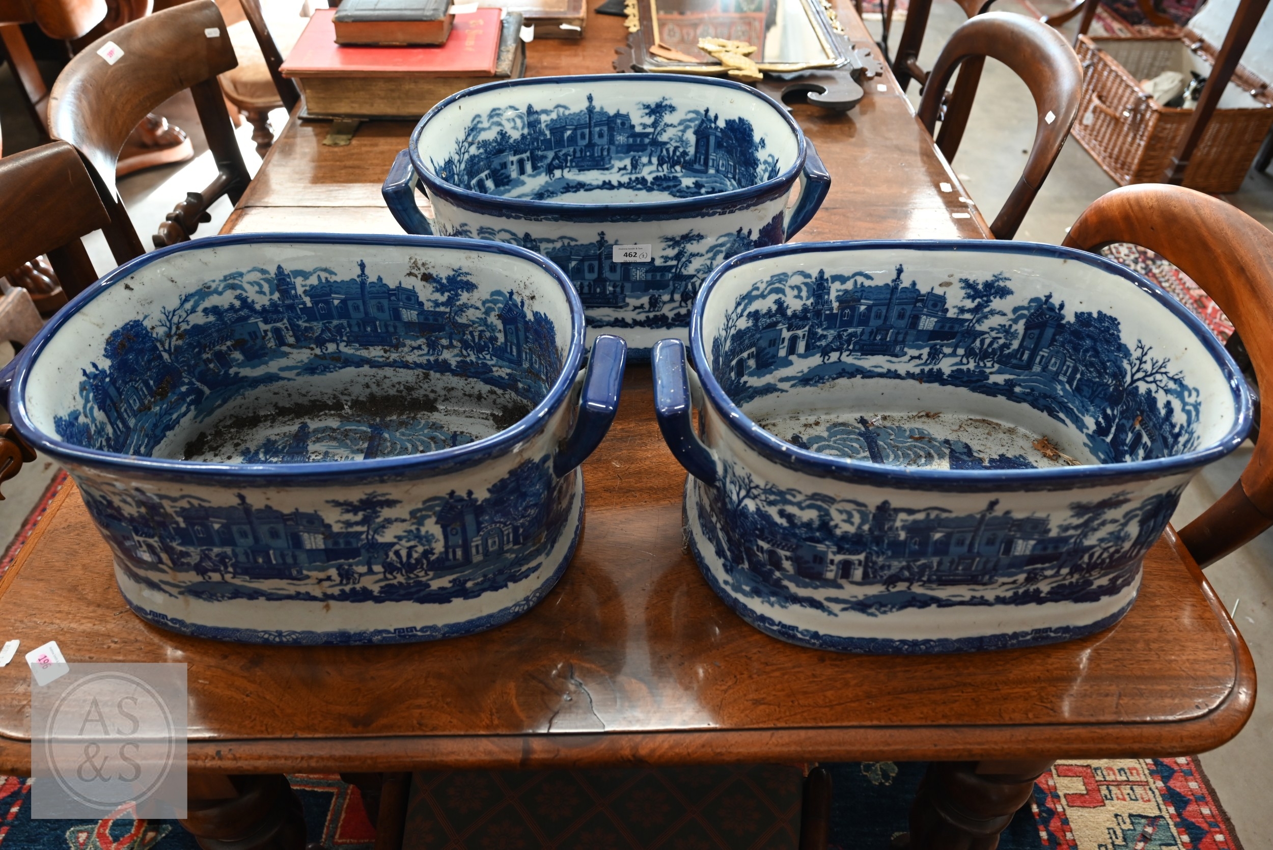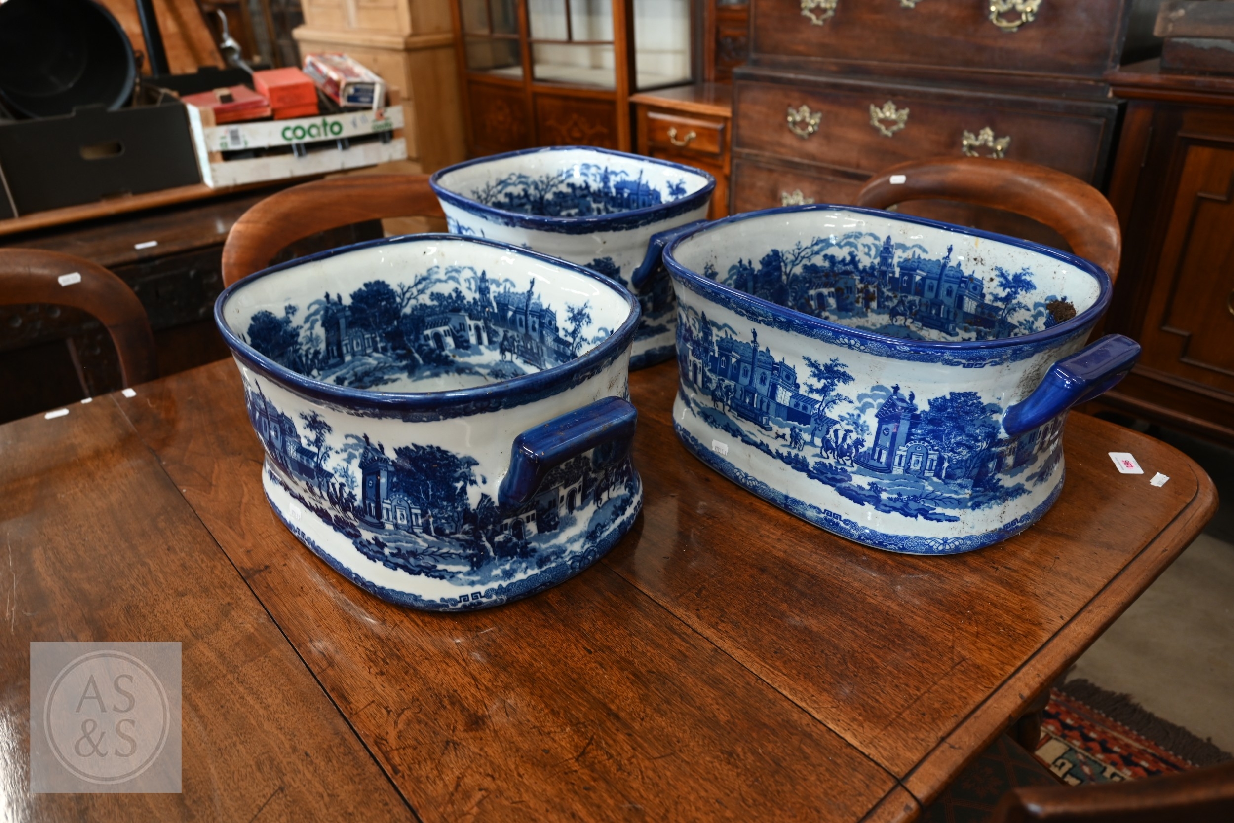 Three blue and white footbaths/planters, printed with Italianate townscapes (3)