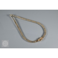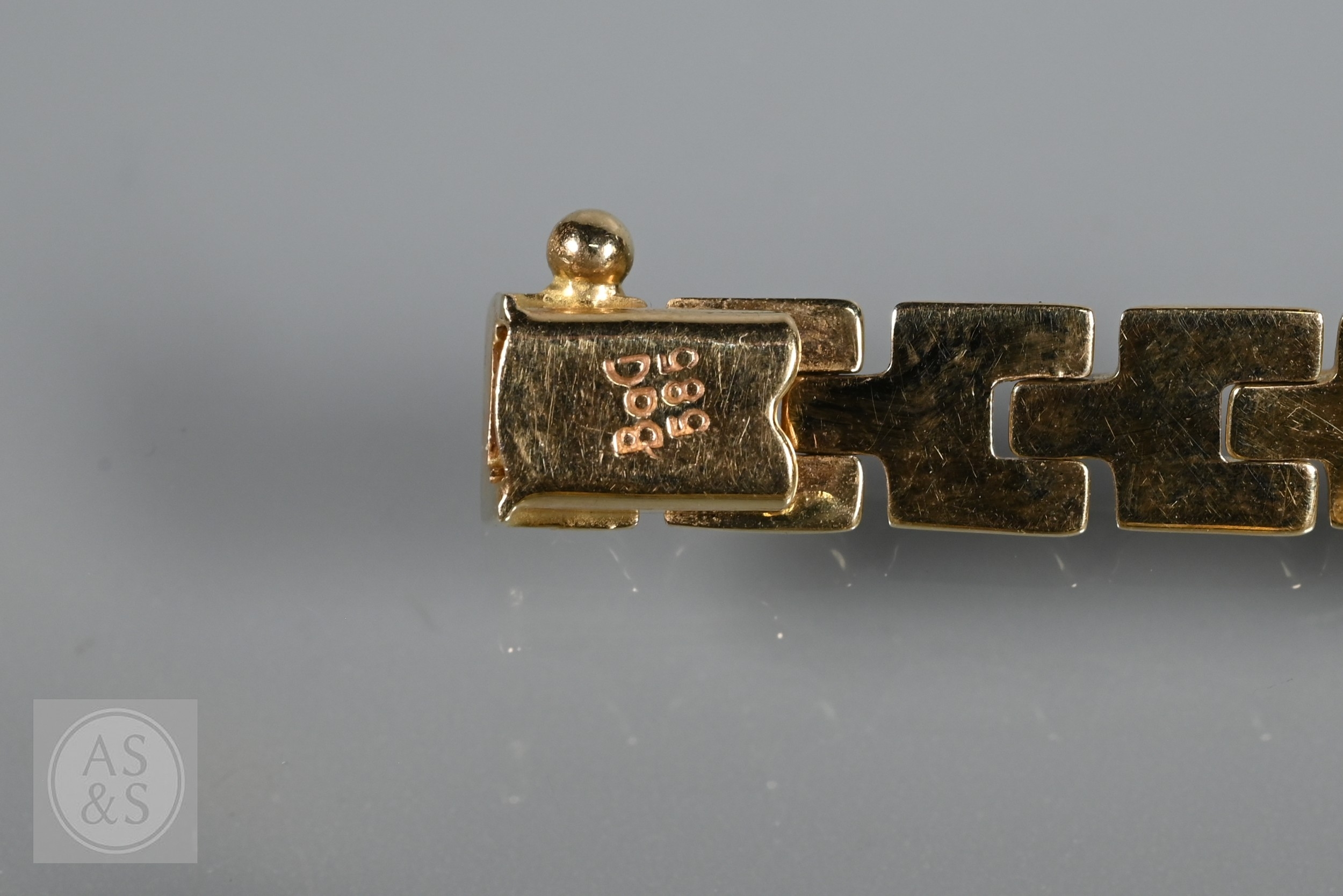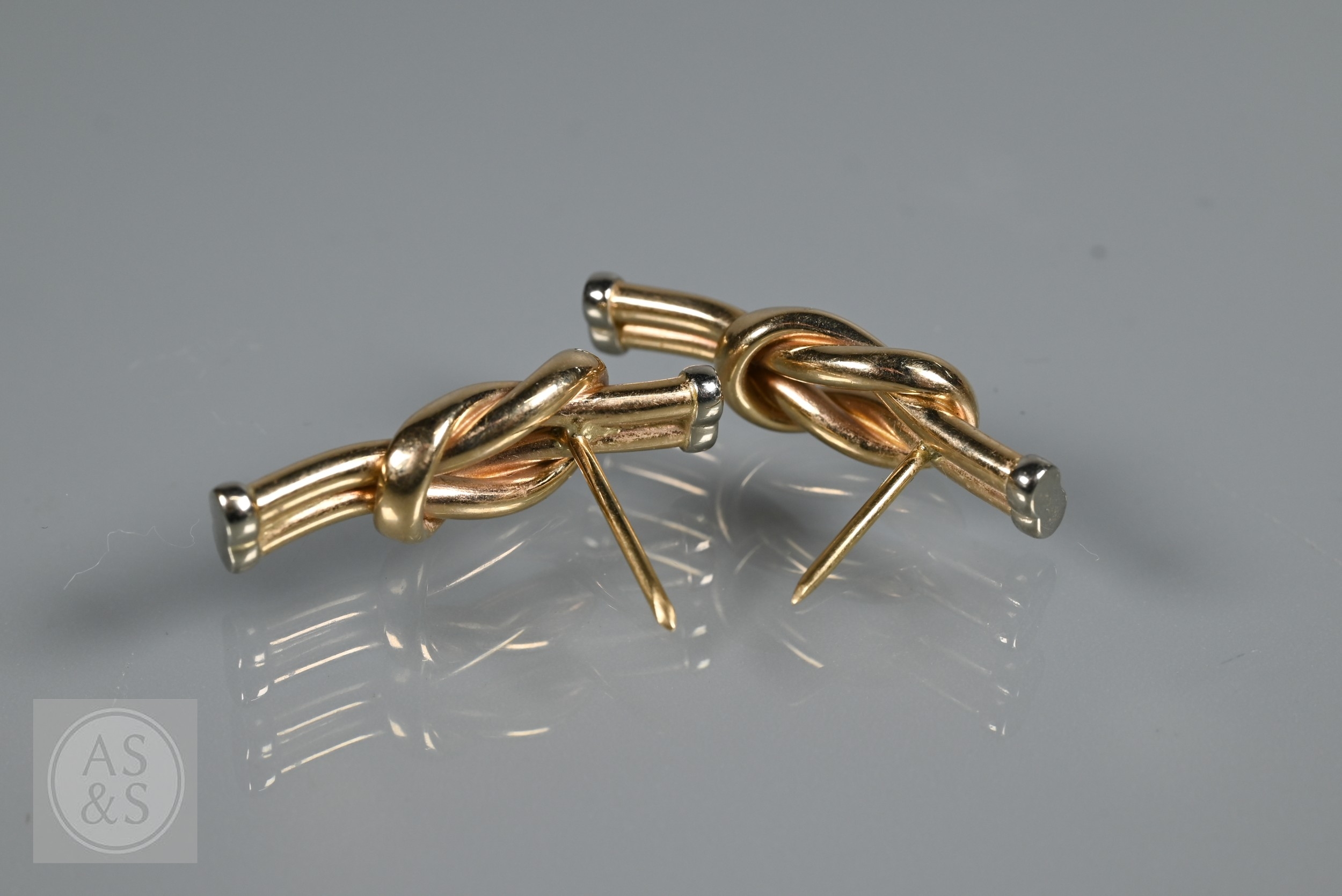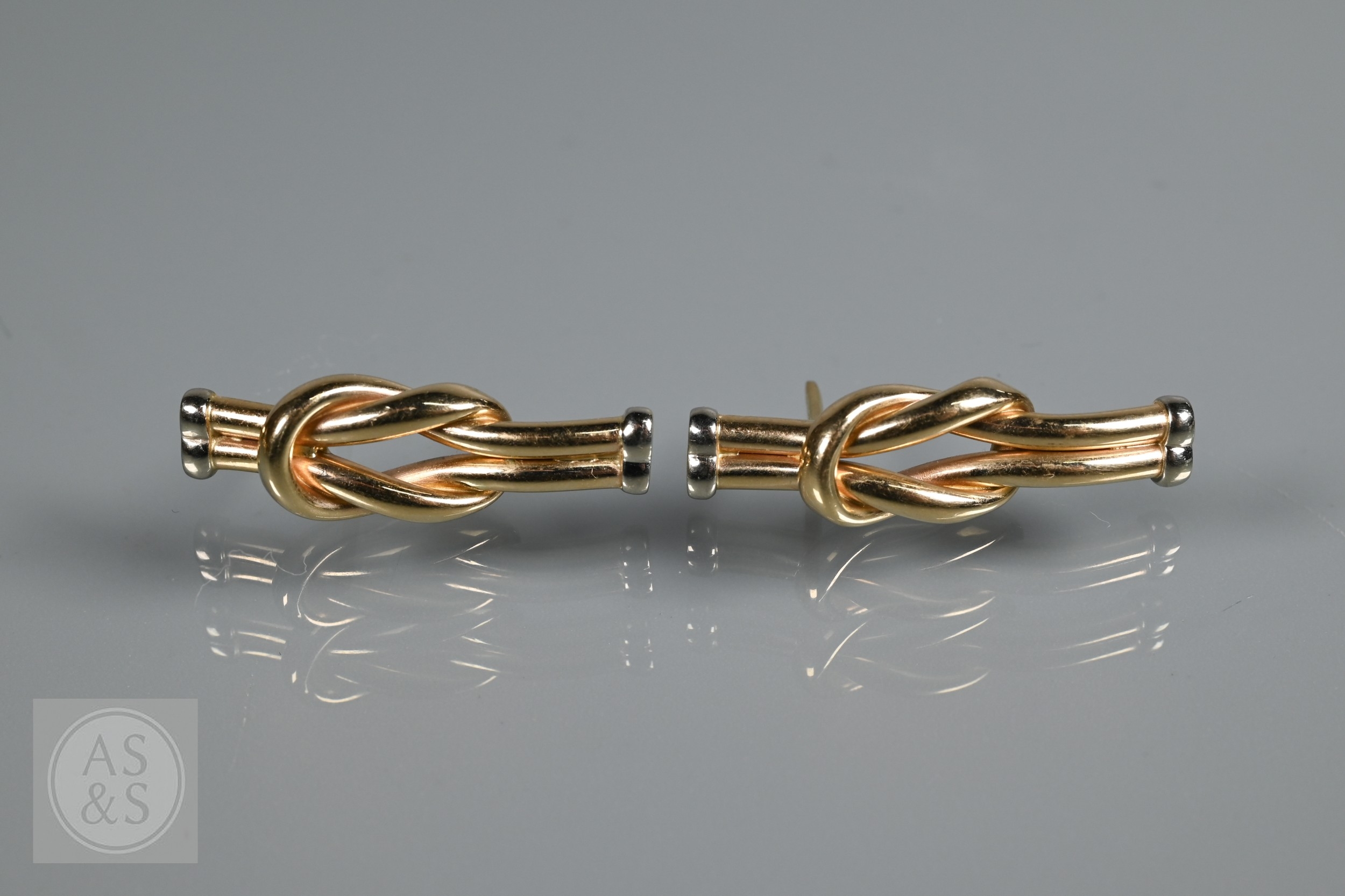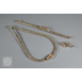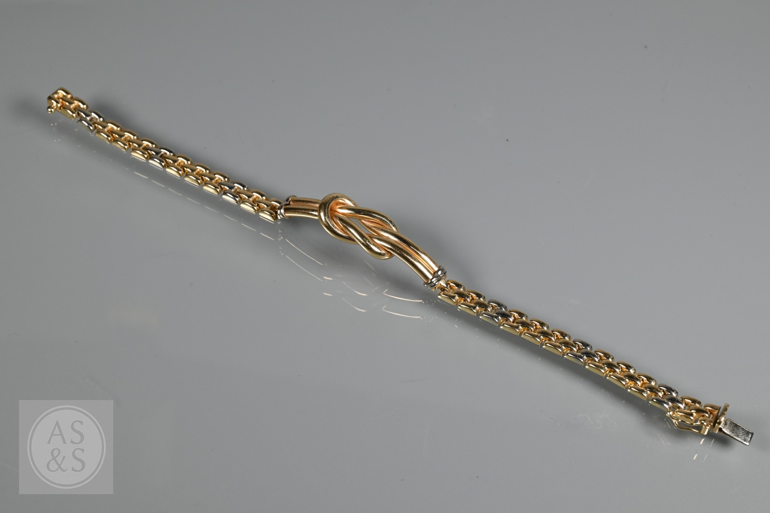 A Continental brick link necklace, bracelet and earring set, with central knot design, yellow and white metal stamped .585 BaG, approx 40g all in