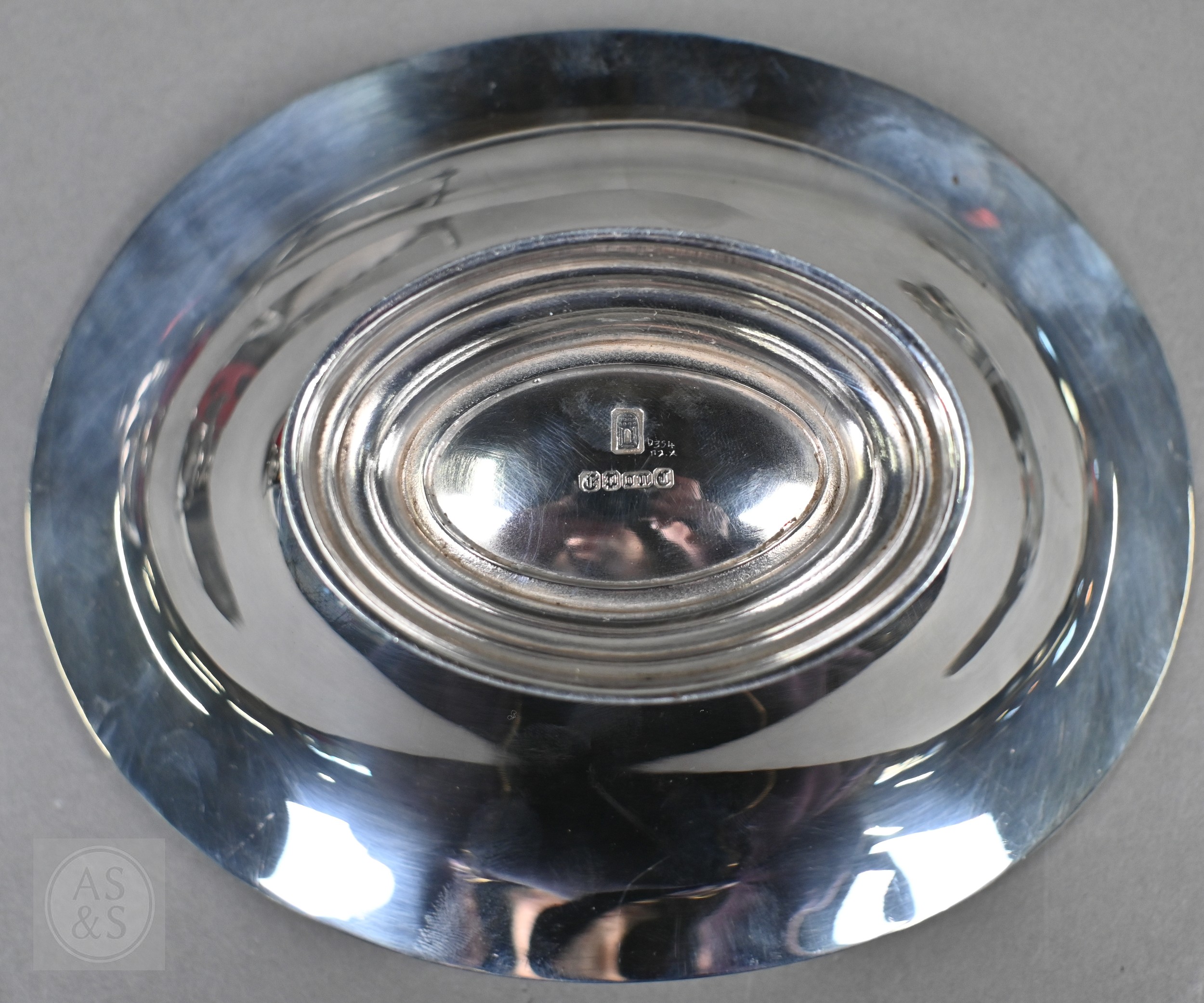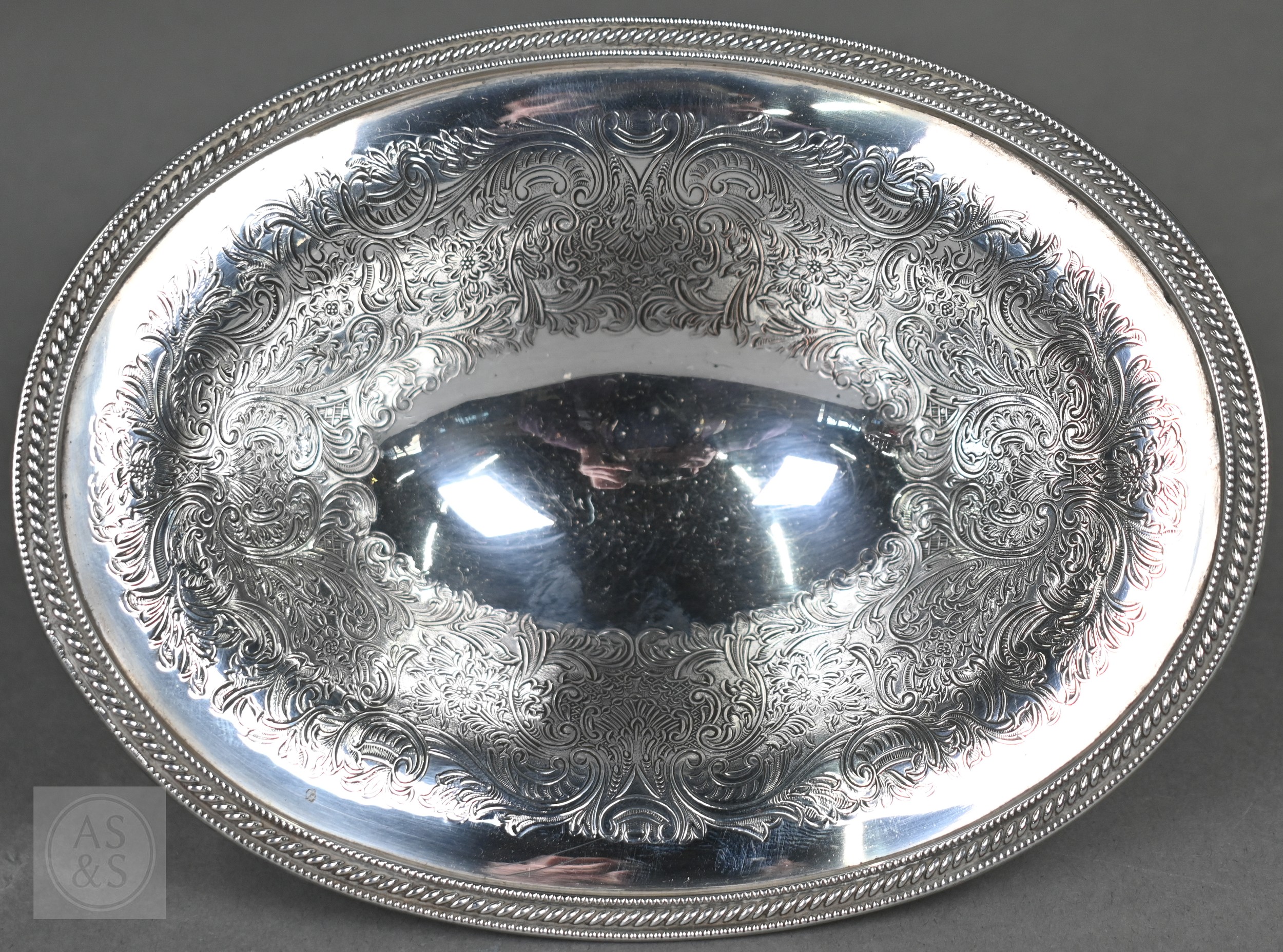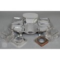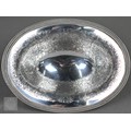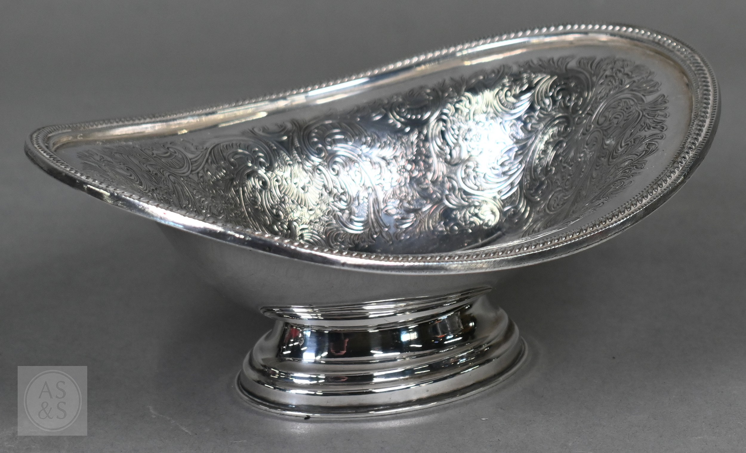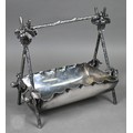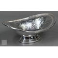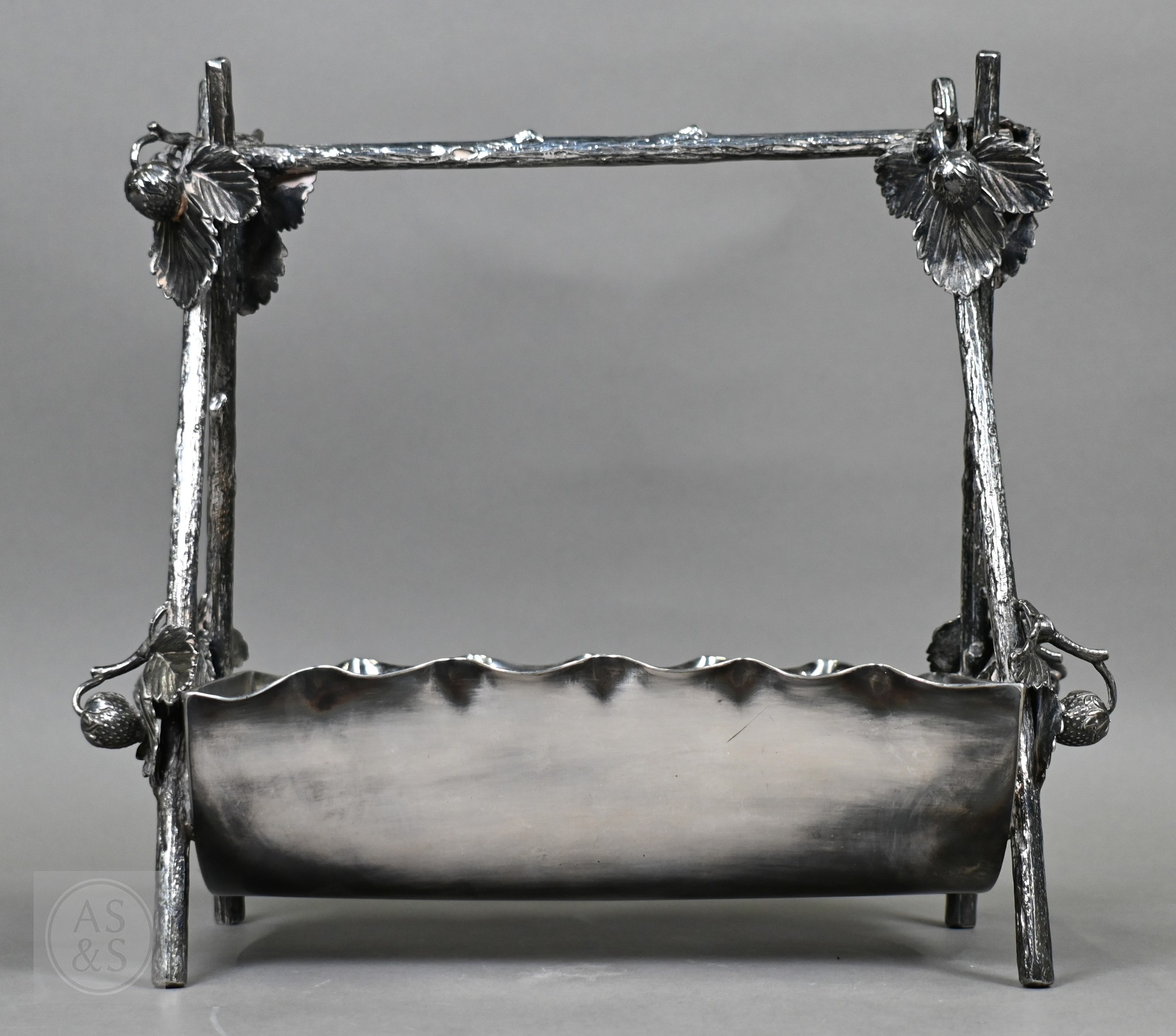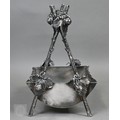 A Regency Old Sheffield Plate desk-stand fitted with nib-box flanked by two square glass pots with metal tops, 20cm wide; lot also includes a Victorian EPBM strawberry basket and a electroplated on copper oval sweetmeat bowl on stemmed foot (3)