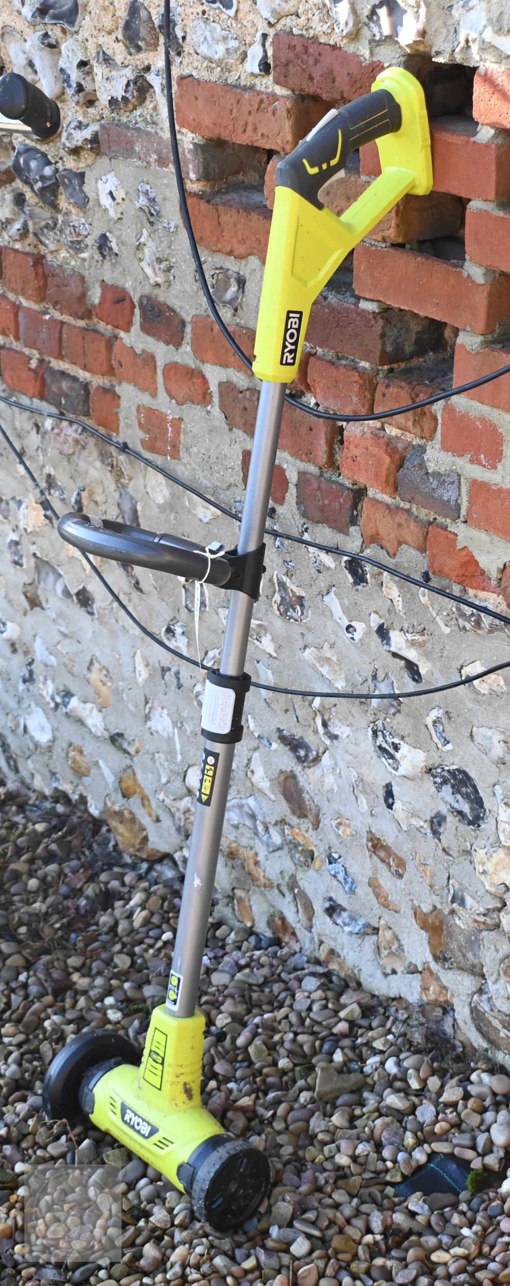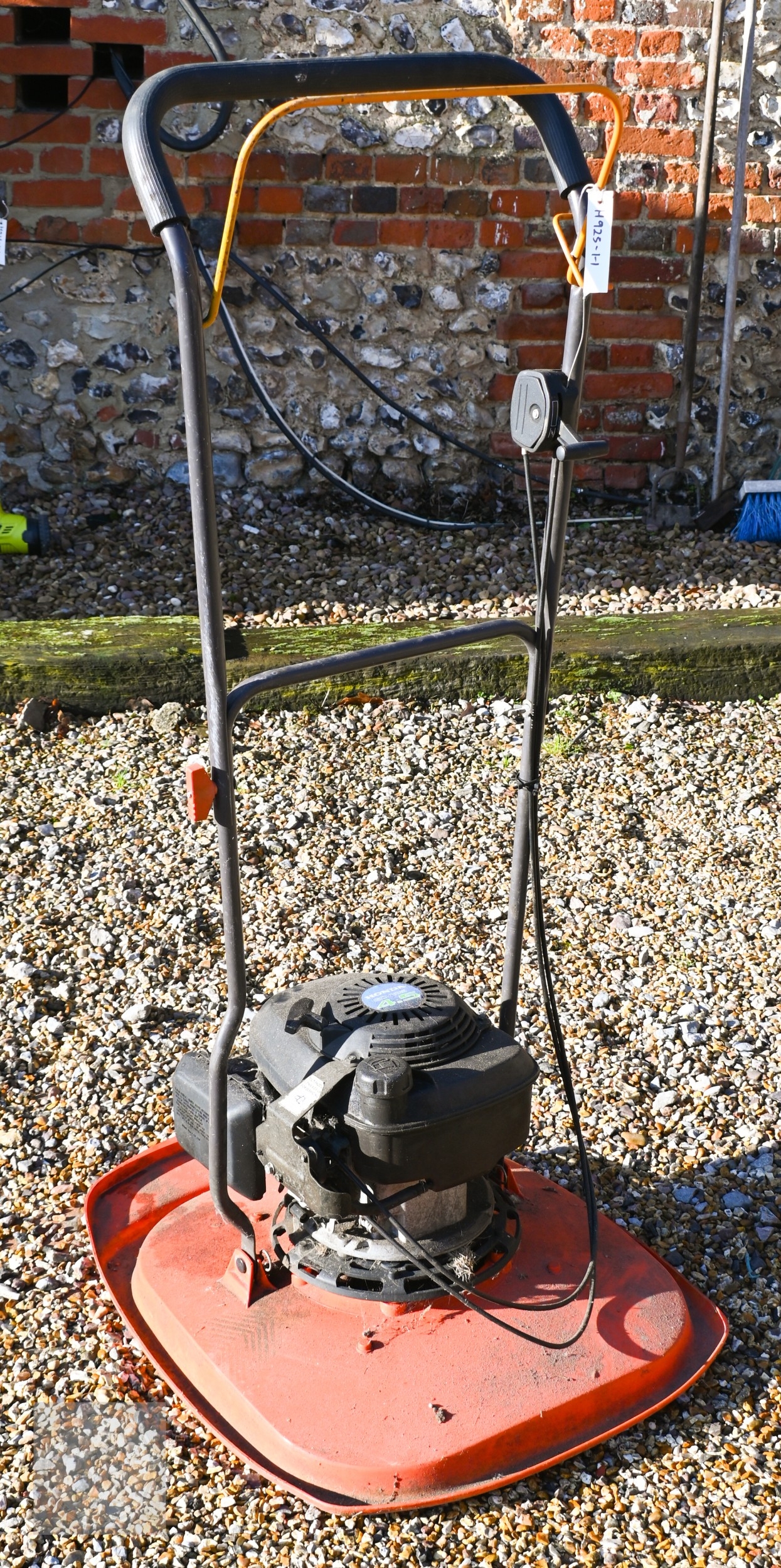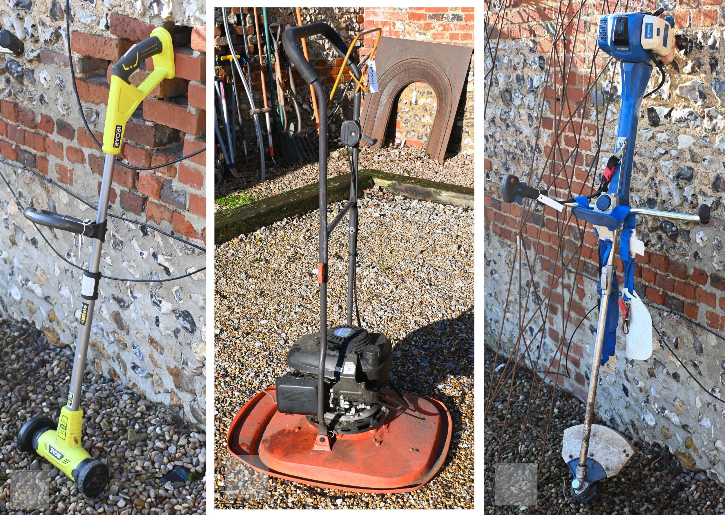 A Hyundai petrol brush cutter c/with straps to/with a Honda 4.5 HP petrol hover mower and a Ryobi One+ cordless patio edger with battery and charger - all a/f (3)