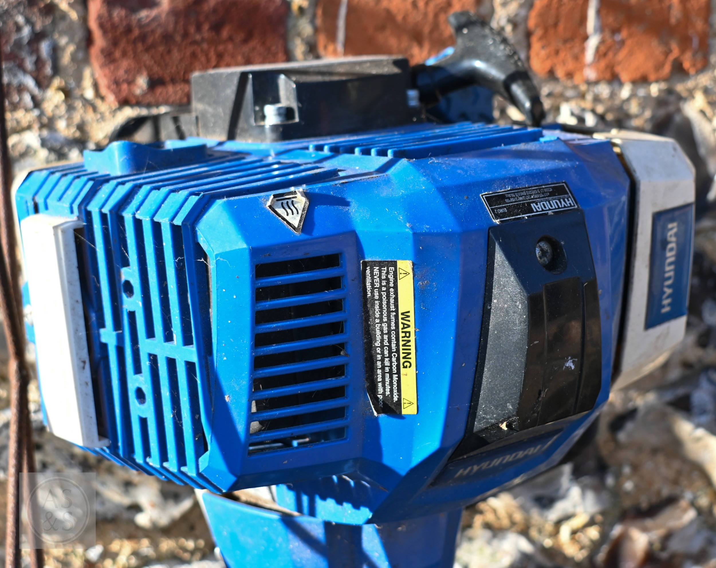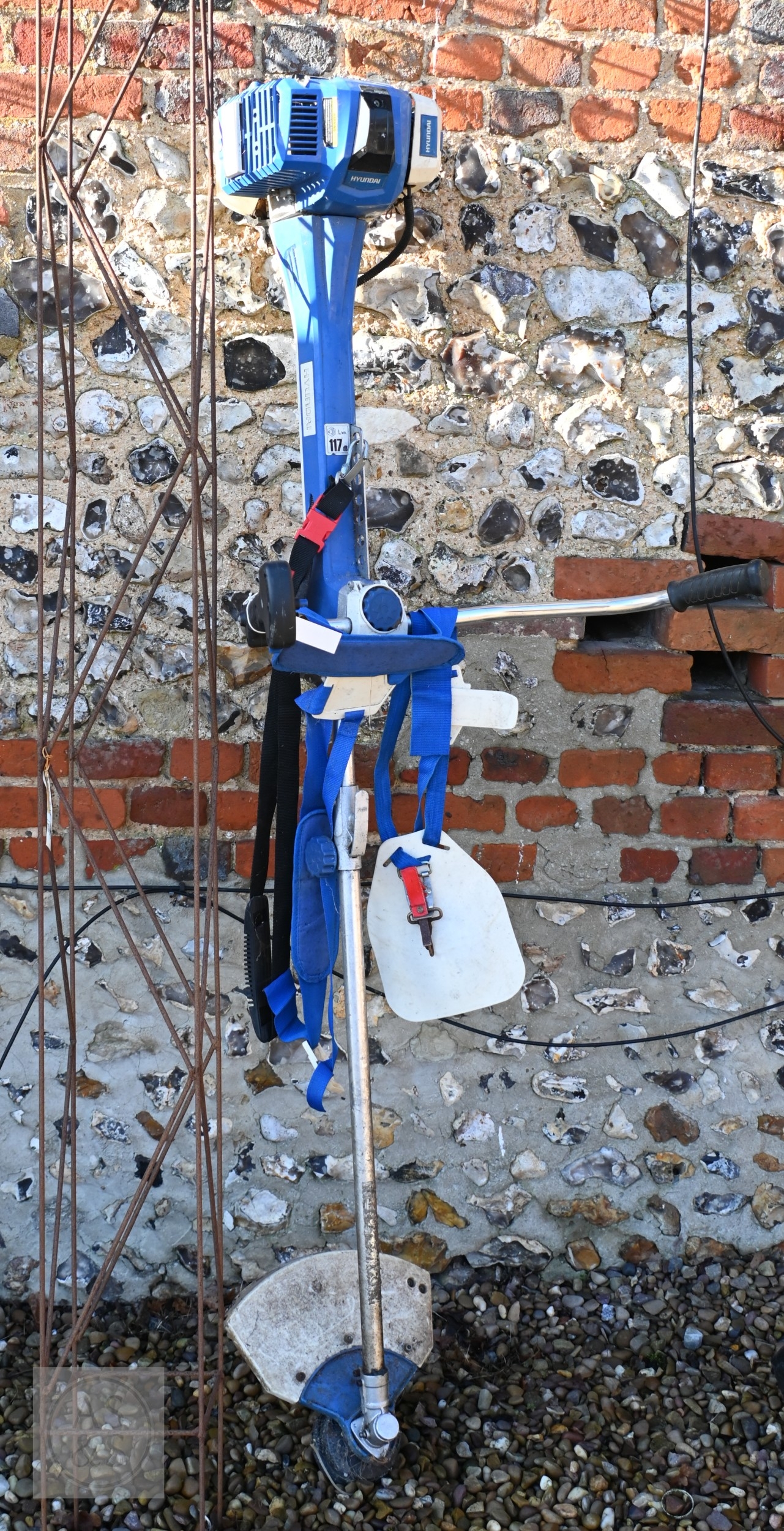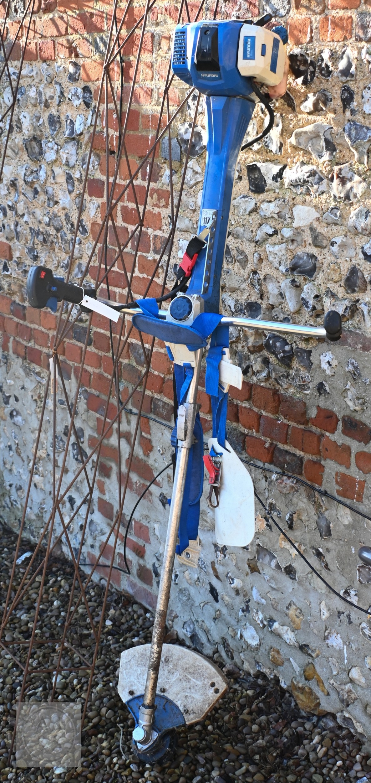 A Hyundai petrol brush cutter c/with straps to/with a Honda 4.5 HP petrol hover mower and a Ryobi One+ cordless patio edger with battery and charger - all a/f (3)