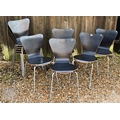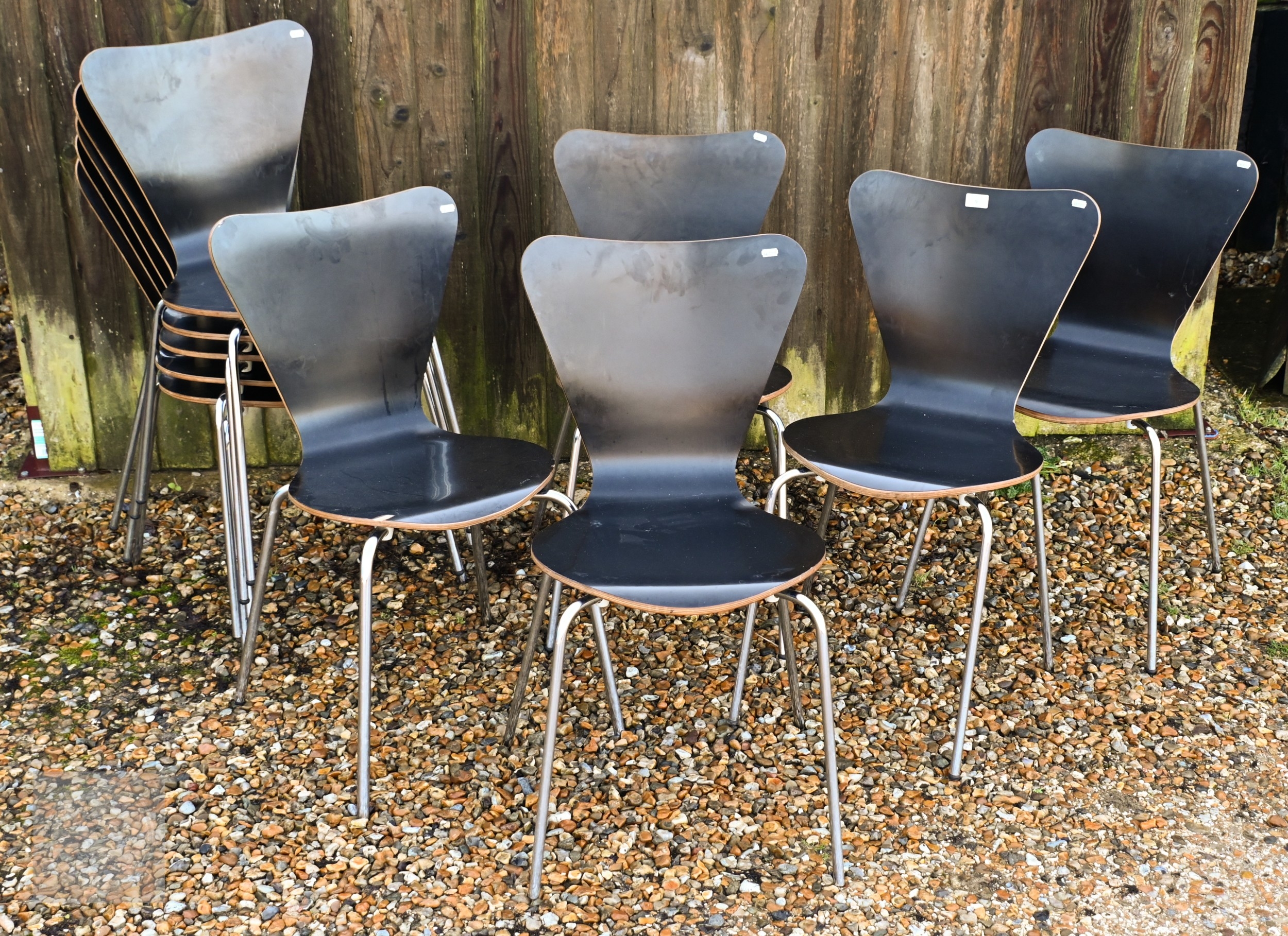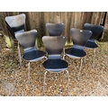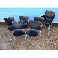 A set of ten black faced laminated plywood stacking chairs, with chrome legs (10)