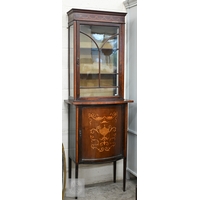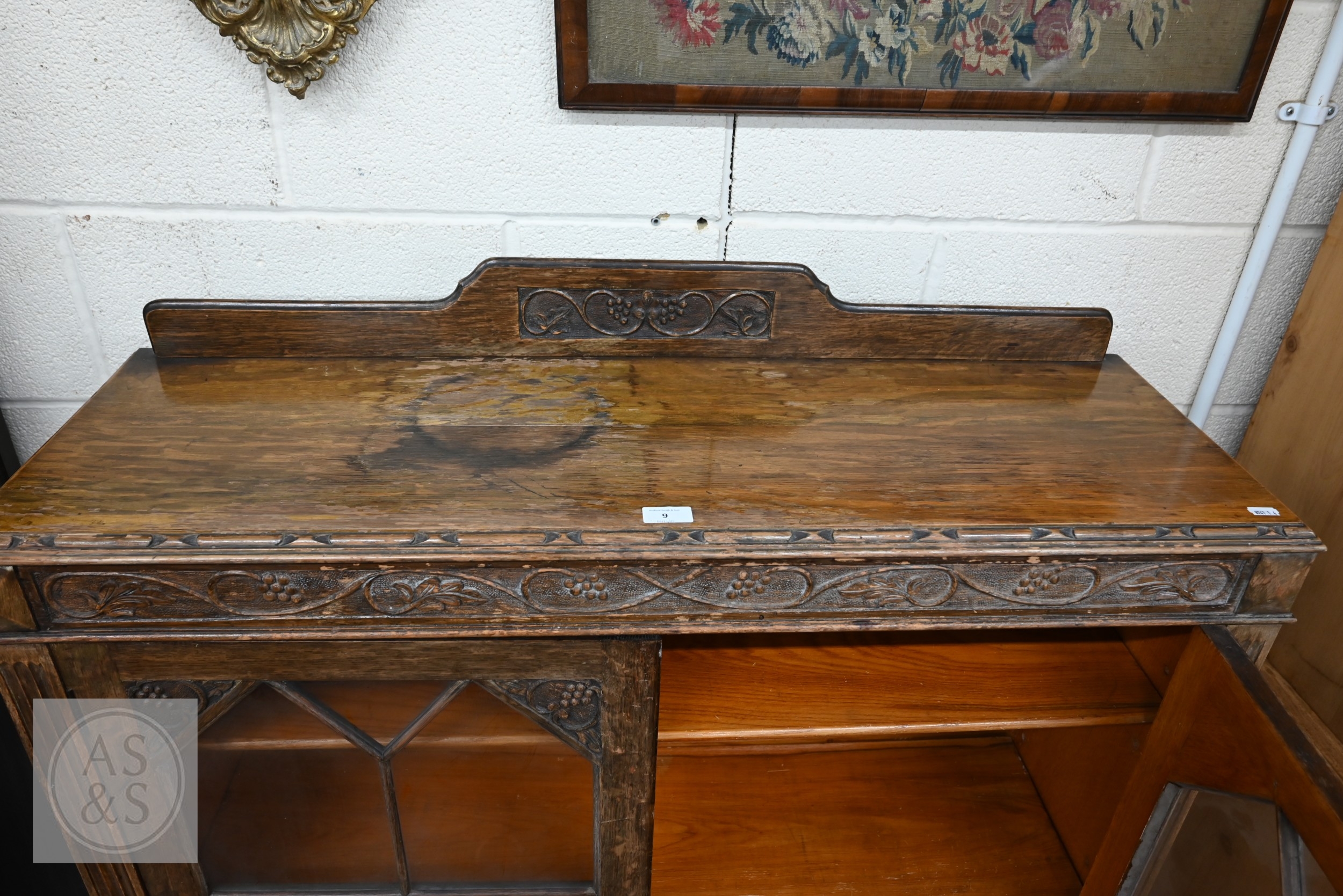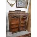 A mid 20th century carved oak bookcase, two glazed doors enclosing adjustable shelving standing on turned feet, 104 x 34 x 136 cm high